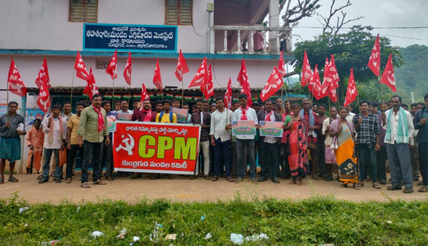 ప్రజాశక్తి-డుంబ్రిగుడ(అనంతపురం) : ప్రభుత్వ శాఖల్లో గిరిజనులకు వంద శాతం రిజర్వేషన్ కల్పించిన జీఒ నెంబర్ 3 ను కేంద్ర ప్రభుత్వం రద్దు చేయడం వల్ల గిరిజనులు ఉద్యోగాలు కోల్పోయారని సిపిఎం అల్లూరి జిల్లా కార్యవర్గ సభ్యుడు వి.ఉమామహేశ్వరరావు విమర్శించారు. కేంద్ర ప్రభుత్వం అవలంబిస్తున్న ప్రజా వ్యతిరేక విధానాలను నిరసిస్తూ సిపిఎం చేపట్టిన సమరభేరి కార్యక్రమంలో భాగంగా సోమవారం మండల కేంద్రంలో స్థానిక సిపిఎం నాయకులు మూడు రోడ్ల జంక్షన్ నుంచి తహశీల్దార్ కార్యాలయం వరకు ర్యాలీ నిర్వహించి అనంతరం అక్కడ ఆందోళన చేపట్టారు అనంతరం సమస్యలతో కూడిన వినతి పత్రాన్ని తహశీల్దార్ సిహెచ్ నాగమ్మకు అందజేశారు. ఈ సందర్భంగా ఆయన మాట్లాడుతూ.. గిరిజన చట్టాలను, హక్కులను అమలు పరచడంలో నిర్లక్ష్యం చేస్తూ కేంద్ర బిజెపి ప్రభుత్వం పూర్తిగా కాల రాస్తుందని విమర్శించారు. వంట గ్యాస్తో పాటు నిత్యవసర సరుకు ధరలను భారీగా పెంచడంతో సామాన్య మధ్యతరగతి ప్రజలపై తీవ్ర భారాన్ని మోపిందన్నారు. ప్రజా సమస్యలను పక్కనపెట్టి, మత తత్వాలను రెచ్చగొట్టి కేంద్ర ప్రభుత్వం ప్రజల్లో లబ్ధి పొందడానికి ప్రయత్నిస్తుందని విమర్శించారు. ఈ కార్యక్రమంలో సిపిఎం నాయకులు, కార్యకర్తలు పాల్గొన్నారు.