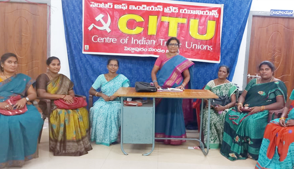 ప్రజాశక్తి - పెద్దాపురం(కాకినాడ) : మేడే దినోత్సవ వేడుకల్లో అంగన్వాడీలందరూ పాల్గొని విజయవంతం చేయాలని అంగన్వాడి వర్కర్స్ అండ్ హెల్పర్స్ యూనియన్ సిఐటియు పెద్దాపురం ప్రాజెక్టు కార్యదర్శి దాడి.బేబీ పిలుపునిచ్చారు. స్థానిక యాసలపు సూర్యారావు భవనంలో మంగళవారం యూనియన్ అధ్యక్షులు పుప్పాల సావిత్రి అధ్యక్షతన జరిగిన సమావేశంలో ఆమె మాట్లాడుతూ.. ప్రపంచవ్యాప్తంగా కార్మిక వర్గం, ఉపాధి వర్గం మేడే స్ఫూర్తితోనే పోరాటాల ద్వారా అనేక హక్కులు సాధించుకున్నారన్నారు. అదే స్ఫూర్తితో అంగన్వాడీలు కూడా మే డే వేడుకల్లో పాల్గొని విజయవంతం చేయాలని పిలుపునిచ్చారు. యాసలపు సూర్యారావు భవనం నుండి ప్రారంభమయ్యే ప్రదర్శనలో అంగన్వాడీలందరూ పాల్గొనాలని విజ్ఞప్తి చేశారు. ఈ సమావేశంలో మామహేశ్వరి, రమణమ్మ, చక్రవేణి, సత్యనారాయణమ్మ, మార్త తదితరులు పాల్గొన్నారు.