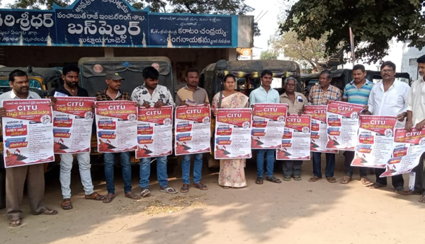 ప్రజాశక్తి-బుట్టాయిగూడెం (ఏలూరు) : భీమవరంలో జరిగే సిఐటియు 16వ రాష్ట్ర మహాసభలను జయప్రదం చేయాలని సిఐటియు జిల్లా సహాయ కార్యదర్శి మొడియం నాగమణి పిలుపునిచ్చారు. గురువారం మండల కేంద్రంలోని సిఐటియు కార్యలయంలో వాల్పోస్టర్ను ఆవిష్కరించారు. ఈ సందర్భంగా ఆమె మాట్లాడుతూ.. జనవరి 2 3 4 తేదీల్లో సిఐటియు 16వ రాష్ట్ర మహాసభలు భీమవరంలో జరగబోతున్నాయన్నారు రెండో తేదీన భారీ ఎత్తున బహిరంగ సభ ఉంటుందని ఈ సభకు మండలంలోని స్కీం వర్కర్లు, బిల్డింగ్, ఆటో కార్మికులు, కాంట్రాక్ట్ ఔట్సోర్సింగ్ కార్మికులు పెద్ద ఎత్తున తరలిరావాలన్నారు. ఈ కార్యక్రమంలోని సిఐటియు మండల కార్యదర్శి పోడియం రాజు, జేయరాజు, మణికల, మంగరాజు, అల్లూరి మోహన్, కృష్ణారెడ్డి, రాంచందర్రావు, రాంబాబు తదితరులు పాల్గొన్నారు.