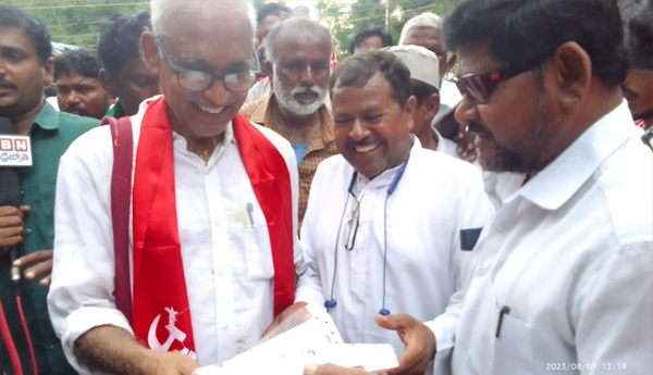 ప్రజాశక్తి కర్నూలు : ముస్లిం మైనార్టీల సమస్యలు పరిష్కారం కోసం ప్రభుత్వంపై ఒత్తిడి తీసుకురావాలని సిపిఎం పార్టీ పోలిట్ బ్యూరో సభ్యులు బి.వి రాఘవులకు ఆవాజ్ కమిటీ నాయకులు వినతి పత్రం అందజేశారు. ఈ కార్యక్రమంలో ఆవాజ్ నగర అధ్యక్షులు పి.ఇక్బాల్ హుస్సేన్ ఆవాజ్ నగర కార్యదర్శి మొహమ్మద్ షరీఫ్, ఆవాజ్ నగర కమిటీ నాయకులు అబ్దుల్ నయీమ్, ఫయాజుల్ కరీం ,ఇలియాజ్, ఇంతియాజ్, ఫయాజ్ ఖాద్రి, షేక్షావలి, మహబూబ్ బాషా, ఖలీల్ ఖాన్, గౌస్ బాషా, అక్బర్ అలీ ,అబ్దుల్ రహమాన్, నూర్ వలి తదితరులు పాల్గొన్నారు.