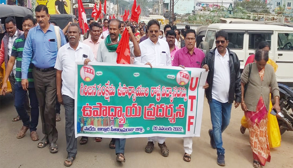 పాడేరు (అల్లూరి) : పాడేరులో గిరిజన సంక్షేమ ఉపాధ్యాయుల రాష్ట్ర సదస్సు ఆదివారం ప్రారంభమయ్యింది. ఈరోజు ఉదయం గ్రాడ్యూయేట్ ఎమ్మెల్సీలు, ఉపాధ్యాయులు కలిసి భారీ ప్రదర్శన ర్యాలీ నిర్వహించారు.