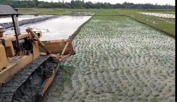 ప్రజాశక్తి - నౌపడ:శ్రీకాకుళం జిల్లా సంతబమ్మాళి మండలం మూలపేటలోని గ్రీన్ఫీల్డ్ పోర్టు భూసేకరణకు భూములు ఇవ్వని రైతుల పొలాల్లోని పంటలను రెవెన్యూ అధికారులు బుధవారం ధ్వంసం చేశారు. మూలపేటలోని సుమారు 20 మంది రైతులు పోర్టుకు భూములివ్వలేదు. భూములివ్వని వారు, భూములిచ్చిన వారు తమ భూముల్లో పంటలను పండిస్తున్నారు. పోర్టు భూసేకరణ నోటిఫికేషన్ పరిధిలోని ప్రాంతాల్లో భూములను చదును చేయాలన్న కలెక్టర్ ఆదేశాలతో టెక్కలి డిఎస్పి బాలచంద్రారెడ్డి నేతృత్వాన పోలీసు బందోబస్తు మధ్య రెవెన్యూ అధికారులు పొలాల వద్దకు చేరుకున్నారు. యంత్రాలతో పంట పొలాలను ధ్వంసం చేశారు. విషయం తెలుసుకున్న మూలపేట నిర్వాసితులు పొలాల వద్దకు వెళ్లి అధికారులను ప్రశ్నించారు. కనీసం సమాచారం ఇవ్వకుండా పొలాలను ధ్వంసం చేయడం ఏమిటని తహశీల్దార్ చలమయ్యను నిలదీశారు. తాము ప్రభుత్వానికి భూములు ఇవ్వలేదని, అటువంటప్పుడు ఎలా ధ్వంసం చేస్తారని ప్రశ్నించారు. పరిహారం పూర్తిస్థాయిలో అందించకుండా పంటలను ఎందుకు తొలగిస్తున్నారని భూములు ఇచ్చిన రైతులు ప్రశ్నించారు. కలెక్టర్ ఆదేశాల మేరకే చేస్తున్నామని, ఏమైనా ఉంటే కలెక్టర్, టెక్కలి సబ్కలెక్టర్తో మాట్లాడాలని తహశీల్దార్ సూచించారు. దీంతో రైతులు యంత్రాలను అడ్డుకున్నారు. మీ డిమాండ్లను సబ్ కలెక్టర్కు తెలియజేయాలని, యంత్రాలను అడ్డుకుని ఇబ్బందులు సృష్టించవద్దని పోలీసులు హెచ్చరించారు. కొంత సమయం కావాలని రైతులు అడిగినా అధికారులు వినిపించుకోలేదు. పోలీసు బందోబస్తు మధ్య రాత్రి కూడా పొలాలను చదును చేశారు.