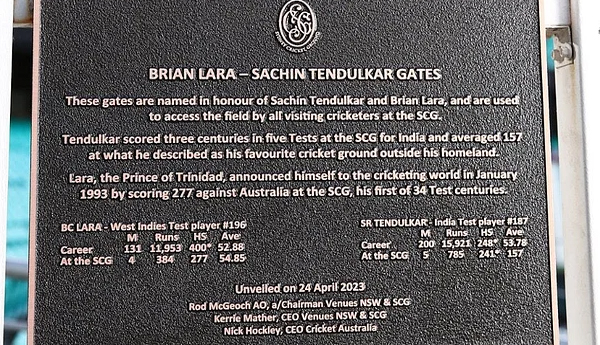 లెజెండరీ క్రికెటర్, టీమిండియా మాజీ ప్లేయర్ సచిన్ టెండూల్కర్కు అరుదైన గౌరవం దక్కింది. 50వ అడుగుపెట్టిన అతడికి ఆస్ట్రేలియా క్రికెట్ గొప్ప బహుమతి ఇచ్చింది. సిడ్నీ క్రికెట్ గ్రౌండ్లోని ఒక గేటుకు సచిన్ టెండూల్కర్ పేరు పెట్టింది. ఈ గౌరవం అందుకున్న ఆస్ట్రేలియన్ కాని తొలి క్రికెటర్గా మాస్టర్ బ్లాస్టర్ రికార్డు సృష్టించాడు. సచిన్తో పాటు వెస్టిండీస్ దిగ్గజం బ్రియాన్ లారా పేరును కూడా ఆ గేటుకు పెట్టింది. ఈ గౌరవం పట్ల క్రికెట్ గాడ్ సంతోషం వ్యక్తం చేశాడు. భారత్ తర్వాత సిడ్నీ నా ఫేవరెట్ గ్రౌండ్. 1991- 92లో ఆస్ట్రేలియాలో నా మొదటి పర్యటనతో మొదలు నాకు అక్కడ ఎన్నో గొప్ప జ్ఞాపకాలున్నాయి. నాతో పాటు నా మంచి స్నేహితుడు లారా పేరు పెట్టినందుకు చాలా సంతోషంగా ఉంది. ఈ గౌరవం కల్పించినందుకు సిడ్నీ క్రికెట్ గ్రౌండ్, ఆస్ట్రేలియా క్రికెట్కు ధన్యవాదాలు తెలియజేస్తున్నా. త్వరలోనే సిడ్నీని సందర్శిస్తాను అని సచిన్ తెలిపాడు.