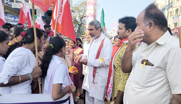 ప్రజాశక్తి-అద్దంకి (బాపట్ల) : ఆంధ్రప్రదేశ్ రాష్ట్రానికి ప్రత్యేక హౌదా, విభజన హామీల సాధనకై యువజన విద్యార్థి సంఘాల సమర యాత్ర శనివారం పట్టణానికి చేరుకుంది. ఈ సందర్భంగా చలసాని శ్రీనివాసరావు, బాపట్ల సిపిఎం జిల్లా కార్యదర్శి, ఇతర నాయకులు, ఎస్ఎఫ్ఐ యూత్, తదితరులు స్థానిక బంగారులోని అంబేద్కర్ విగ్రహానికి పూలమాలలు వేసి ఘనంగా నివాళులు అర్పించారు. స్థానిక విద్యానగర్లోని ఒక కాలేజీలో నిర్వహించిన సభా కార్యక్రమంలో భారీ సంఖ్యలో విద్యార్థులు పాల్గొన్నారు.