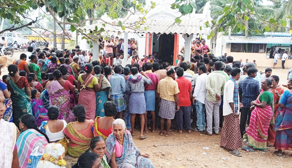 ప్రజాశక్తి-రాంబిల్లి (అనకాపల్లి) : తమ సమస్యల పరిష్కారాన్నికోరుతూ నేవల్ బేస్ నిర్వాసితులు చేపడుతున్న ఆందోళన మంగళవారానికి 23వ రోజుకు చేరుకుంది. ఈ రోజు వినూత్న రీతిలో, ధర్నా శిబిరం పక్కనే ఉన్న పైడమ్మ తల్లి ఆలయం వద్ద, నిర్వాసితులు పెద్ద ఎత్తున, గుడి చుట్టూ దండాలు పెడుతూ.. నేటికి ఇరవై మూడు రోజులుగా ఆందోళన చేస్తున్న మా సమస్యలు కేంద్ర రాష్ట్ర ప్రభుత్వాలు, జిల్లా అధికారులు పట్టించుకోలేదమ్మా, మీరైనా మా సమస్యలు పరిష్కారానికి దారి చూపాలని, వేడుకున్నారు. ఈ ధర్నా శిబిరానికి ఎలమంచిలి నియోజకవర్గ టిడిపి ఇంచార్జ్ ప్రగడ నాగేశ్వరరావు తరఫున మండల పార్టీ అధ్యక్షులు దిన్ బాబు 50 వేల రూపాయలు విరాళం ఇచ్చారు. ఈ కార్యక్రమంలో ఎనిమిది గ్రామాలు నిర్వాసితులు ఎనిమిది గ్రామాలు పెద్దలు పాల్గొన్నారు