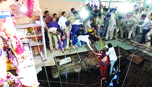 ఈ ఆలయం ఉన్న భూమిలో పురాతన కాలం నుంచి ఓ మెట్లబావి ఉంది. అయితే దాదాపు నాలుగు దశాబ్దాల క్రితం ఆ బావిని మూసేశారు. కానీ ఎలాంటి జాగ్రత్తలు తీసుకోకుండా కేవలం పైన శ్లాబుతో ఫ్లోరింగ్ చేసి.. ఆలయాన్ని నిర్మించారు. ఆ విషయం తెలియక చాలామంది బావి ఉన్న ప్రాంతంలో కూర్చునేసరికి బరువు మోయలేక.. నేల కుంగిపోయి ఈ దుర్ఘటన చోటుచేసుకుందని స్థానిక అధికారులు వెల్లడించారు. బావి లోతు దాదాపు 50 అడుగులు ఉన్నట్లు తెలుస్తోంది.