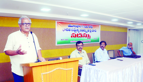 ప్రజాశక్తి - శ్రీకాకుళం ప్రతినిధి : సంక్షోభం నుంచి ప్రజల దృష్టిని మరల్చడానికే కేంద్ర ప్రభుత్వం అత్యవసరంగా ఏకరూప పౌరస్మృతి (యుసిసి)పై చర్చ జరగాలని కోరుకుంటోందని ఉత్తరాంధ్ర పట్టభద్రుల మాజీ ఎమ్మెల్సీ ఎం.వి.ఎస్ శర్మ విమర్శించారు. 'యూనిఫాం సివిల్ కోడ్'పై శ్రీకాకుళం జిల్లా ఎచ్చెర్లలోని డాక్టర్ బి.ఆర్ అంబేద్కర్ యూనివర్సిటీ సెమినార్ హాల్లో గరిమెళ్ల విజ్ఞాన కేంద్రం ఆధ్వర్యాన బుధవారం నిర్వహించిన సెమినార్లో ఆయన మాట్లాడారు. దేశ ఆర్థిక వ్యవస్థ తీవ్ర సంక్షోభంలో ఉందని, దాన్ని కప్పిపుచ్చుకోవడానికి కేంద్ర ఆర్థిక మంత్రి నిర్మలా సీతారామన్ నానా పాట్లు పడుతున్నారని అన్నారు. దేశంలో ఇప్పుడున్న పరిస్థితుల్లో ఏకరూప పౌర స్మృతి అమలు ఊసెత్తవద్దని 2015లో బిజెపి ప్రభుత్వం నియమించిన 21వ లా కమిషనే తేల్చిచెప్పిందని గుర్తు చేశారు. విభిన్న సంప్రదాయాలు, ఆచారాలున్న నేపథ్యంలో పౌరులందరికీ ఒకటే సివిల్ కోడ్ అమలు సాధ్యం కాదని చెప్పారు. ఆదేశ సూత్రాల్లో ఉందని యుసిసిపై చర్చ జరపమంటున్నారని, సమానత్వం, సామాజిక న్యాయం, అమలు మాటేమిటని ప్రశ్నించారు. దేశంలో పౌరుల మధ్య సమానత్వం అవసరమా, ఏకరూప పౌరస్మృతి అవసరమా? అని ప్రశ్నించారు. ఏ సమస్యలను చర్చించాలని ప్రజలు కోరుకుంటున్నారో కేంద్ర ప్రభుత్వ అజెండాలో అవి లేవని విమర్శించారు. సాఫ్ట్వేర్ రంగంలో ఆర్టిఫిషియల్ ఇంటెలిజెన్సీ అమలైతే హైదరాబాద్, బెంగళూరు, చెన్నై, కొచ్చిన్ నగరాలు కుప్పకూలిపోతాయని తెలిపారు. ఎపికి ప్రత్యేక హోదా, స్పెషల్ ప్యాకేజీ ఇవ్వని కేంద్ర ప్రభుత్వాన్ని వైసిపి, టిడిపి, జనసేన నిలదీయడానికి భయపడుతున్నాయన్నారు. గరిమెళ్ల విజ్ఞాన కేంద్రం అధ్యక్షులు వి.జి.కె మూర్తి అధ్యతన నిర్వహించిన కార్యక్రమంలో రేడియంట్ హెల్త్ కేర్ వైద్యులు డాక్టర్ అదీబ్ హసన్, యూనివర్సిటీ న్యాయ కళాశాల సీనియర్ అధ్యాపకులు డాక్టర్ వై.రాజేంద్రప్రసాద్ తదితరులు పాల్గొన్నారు.