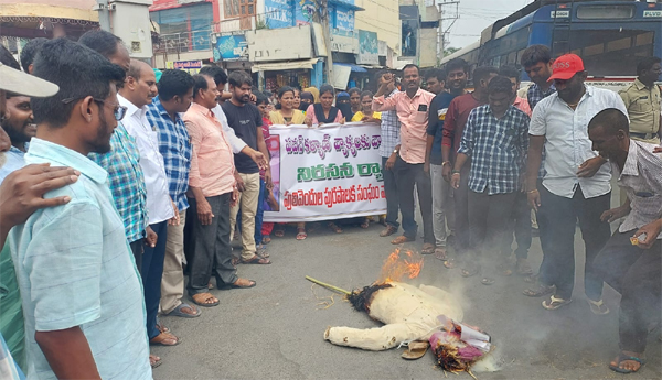 ప్రజాశక్తి - పులివెందుల రూరల్ (కడప) : ఇటీవల ఏలూరులోని సభలో పవన్ కళ్యాణ్ వాలంటరీలపై చేసిన అనుచిత వ్యాఖ్యలను ఖండిస్తూ ... పులివెందుల రూరల్లోని వాలంటీర్లు మంగళవారం నిరసన ర్యాలీని చేపట్టారు. పవన్ కళ్యాణ్ దిష్టిబొమ్మ పట్టుకొని పాత బస్టాండ్ నుండి సర్కిల్ వరకు ర్యాలీగా వచ్చి సర్కిల్ వద్ద దిష్టిబొమ్మను దగ్ధం చేశారు. అనంతరం నేతలు మాట్లాడుతూ ... సేవా దృక్పథంతో తాము పనిచేస్తున్నామని, తమపై లేనిపోని ఆరోపణలు చేయడం, వివరాలను వైసిపి నాయకులకు అందజేస్తున్నామని అనడం సబబు కాదన్నారు. కరోనా సమయంలో సొంత మనుషుల కంటే ఎక్కువగా కష్టపడి పని చేశామని, ప్రతి నెల ఒకటవ తేదీన తెల్లవారుజామున నుంచే పెన్షన్ పంపిణీ కార్యక్రమాన్ని చేపడుతున్నామన్నారు. ఇప్పటికైనా వాలంటరీలకు క్షమాపణలు చెప్పకపోతే ఆందోళన తీవ్రత చేస్తామని హెచ్చరించారు.