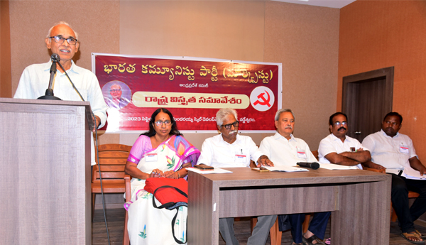 రాష్ట్రంలో ప్రస్తుత ప్రజాసమస్యలు, ప్రజలపై భారాలు పెరిగిపోతున్నాయని, అవినీతి, అక్రమాలకు అంతే లేకుండా పోయిందని సిపిఎం రాష్ట్ర కార్యదర్శి వి.శ్రీనివాసరావు అన్నారు. 2021 డిసెంబర్లో రాష్ట్ర మహాసభ అనంతరం జరిగిన అంశాలపై కార్యదర్శి నివేదికను ఆయన ప్రవేశపెట్టారు. ఈ సందర్భంగా శ్రీనివాసరావు మాట్లాడుతూ కేంద్ర, రాష్ట్ర ప్రభుత్వాలు అనుసరిస్తున్న ప్రజావ్యతిరేక, దోపిడీ విధానాలపై పోరాడుతూ పార్టీ స్వతంత్ర ప్రజా పునాదిని బలపరుచుకోవడానికి కృషి చేయాలని పిలుపునిచ్చారు. సిపిఎం తొలి నుండీ నికరంగా ప్రజల కోసం పోరాడుతోందని తెలిపారు. ఇసుక అక్రమాలు, భూముల దోపిడీ తదితర అంశాల్లో రాజీలేని పోరాటం చేస్తున్నామని పేర్కొన్నారు. స్కీం వర్కర్లకు జరుగుతున్న అన్యాయంపైనా, కార్మికులకు చేస్తున్న ద్రోహంపైనా పోరాడుతున్న పార్టీ సిపిఎం మాత్రమేనని అన్నారు. ఈ కృషిలో వామపక్ష పార్టీలతో సహా కలిసి వచ్చే ఇతర లౌకిక పార్టీలను కలుపుకుని పనిచేస్తామని తెలిపారు. రాష్ట్రంలో వైసిపి టిడిపి రెండూ బిజెపికి వంతపాడుతున్నాయని, రాష్ట్రానికి ద్రోహం చేస్తున్న బిజెపి పల్లకి మోయడం దుర్మార్గమని విమర్శించారు. లౌకిక పార్టీ అని చెప్పుకునే పార్టీలు బిజెపి మతోన్మాదాన్ని ఎలా బలపరుస్తాయని ప్రశ్నించారు. వీరి వైఖరి దళితులకు, ఆదివాసీలకు మహిళలకు మైనార్టీలకు హాని చేస్తుందని తెలిపారు. మరోవైపు వైసిపి, తెలుగుదేశం పార్టీలు పరస్పరం వ్యక్తిగత విమర్శలకు పరిమితమయ్యాయని విమర్శించారు. రెండు పార్టీల నాయకులు పరస్పర దూషణలకు, బూతులకు ప్రాధాన్యత ఇచ్చి ప్రజా సమస్యలపై నోరెత్తడం లేదని విమర్శించారు. రాష్ట్రంలో దుర్భిక్షం పెరిగిందని అన్నారు. లోటువర్షపాతం వల్ల 14 జిల్లాల్లో 416 మండలాల్లో కరువు పరిస్థితులు నెలకొన్నాయని, సాధారణసాగు 85.97 లక్షల ఎకరాలు కాగా ఆగస్టు నాటికి 47.90 లక్షల ఎకరాలు మాత్రమే సాగు అయిందని తెలిపారు. అసైన్ట్ చట్టసవరణ చేశారని, ఇది అన్యాక్రాంతమైన భూమలుకు చట్టబద్ధత కల్పించడమేనని తెలిపారు. రాష్ట్రంలో విద్యుత్ సంక్షోభం పెరుగుతోందని అన్నారు. దీన్ని అధిగమించేందుకు యూనిట్ రూ.9.10 పైసలు చొప్పున కొనుగోలు చేస్తోందని తెలిపారు. విద్యుత్ ధరలు పెరిగిపోవడం వల్ల అనేక పరిశ్రమలు నష్టాలపాలు అవుతున్నాయని, చిన్న, మధ్య తరహా పరిశ్రమలు మూతవేసుకునే పరిస్థితి వస్తోందని తెలిపారు. ఉజ్వల గ్యాస్ పథకం ఐదు లక్షల మందికి వర్తింపజేశారని, అందరికీ వర్తింపజేయాలని అన్నారు. భవన నిర్మాణ రంగం దెబ్బతిందని, చేనేత రక్షణ కోసం పట్టు, నూలుపై జిఎస్టి ఎత్తివేయాలని అన్నారు. విశాఖ స్టీలు ప్రైవేటీకరణ యత్నాలను అడ్డుకునేందుకు పెద్దఎత్తున పోరాడుతున్నామని తెలిపారు. విద్యావైద్య రంగాల ప్రైవేటీకరణ విధానాల దుష్పలితాలు క