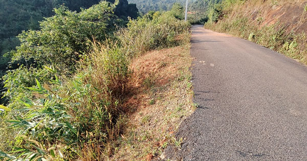 రోడ్డు వెంబడి భారీ లోయ