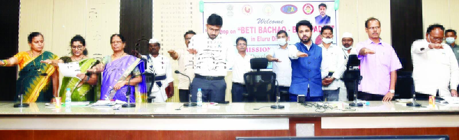 ఆడ పిల్లల జనన నిష్పత్తిని పెంచడం, విద్యను ప్రోత్సహించడం ద్వారా ఆదర్శ జిల్లాగా నిలపాలని జిల్లా కలెక్టర్ ప్రసన్న వెంకటేష్ అన్నారు. బుధవారం కలెక్టరేట్లోని గోదావరి సమావేశ మందిరంలో మహిళా శిశుసంక్షేమశాఖ, మిషన్ శక్తి ఆధ్వర్యంలో బేఠీ బచావో-బేఠీ పడావో కార్యక్రమ వర్క్షాప్ నిర్వహించారు. ముఖ్యఅతిథి ప్రసన్న వెంకటేష్ మాట్లాడుతూ బేఠీ బచావో-బేఠీ పడావో కార్యక్రమం మన జిల్లాకు ఈ సంవత్సరం అమల్లోకి వచ్చిందన్నారు. ప్రతి గ్రామ పంచాయతీ, మున్సిపాల్టీ పరిధిలో జనన, మరణాల నమోదును రిజిష్టరులో పొందుపర్చుతున్నారని, దీని ఆధారంగా ప్రతినెలా ఈ డేటాను సేకరించి దీన్నిబట్టి ఆడపిలల నిష్పత్తి ఎక్కడ తక్కువగా ఉందో గుర్తించవచ్చని అన్నారు. స్కానింగ్ సెంటర్లలో అబార్షన్ చేసే డాక్టర్లను గుర్తించాలని, వారిపై చట్టప్రకారం కమిటీ చర్యలు తీసుకోవాలని అన్నారు. స్కూళ్లు, కాలేజీల్లోనూ బాలికల డ్రాప్వుట్స్ లేకుండా చూడాలన్నారు. బాలికలకు ప్రత్యేక మరుగుదొడ్లు ప్రతి పాఠశాలలోను ఏర్పాటు చేసినట్లు తెలిపారు. నేడు ఆడ పిల్లలను పుట్టనిద్దాం-ఆడ పిల్లలను రక్షిద్దాం-ఆడ పిల్లలను చదివిద్దాం అనే సందేశాన్ని జిల్లావ్యాప్తంగా ఆవగాహన కల్పించాలన్నారు. ఈ కార్యక్రమం అనంతరం ఆడపిల్లను పుట్టనిద్ధాం-ఆడపిల్లను రక్షిద్దాం-చదివిద్దాం అని ప్రతిజ్ఞ చేయించారు. మిషన్ శక్తి ప్రోగ్రాం పరిపాలనాధికారి నిర్మల మాట్లాడుతూ ఉజ్వల స్కీమ్, వన్స్టాప్ సెంటర్, వీడియో కాన్ఫరెన్స్, నారీ అదాలత్, శక్తిసదన్, విడోస్ తదితర అంశాలపై వివరిం చారు. కార్యక్రమంలో నూజివీడు సబ్ కలెక్టర్ ఆదర్శ రాజేంద్రన్, జెడ్పి సిఇఒ రవికుమార్, డిఎంహెచ్ఒ డాక్టర్ డి.ఆశా, డిఇఒ రవిసాగర్, ఐసిడిఎస్ పీడీ పద్మావతి, డిఆర్డిఎ పీడీ విజయరాజు, ఏలూరు కార్పొరేషన్ కమిష నర్ ఎస్.వెంకటకృష్ణ, డిపిఒ మల్లికార్జునరావు, సోషల్ వెల్ఫేర్ జెడి మధుసూదనరావు, డిసిపిఒ సూర్యచక్రవేణి, కాలేజీ ప్రిన్సిపాల్స్, అంగన్వాడీ సూపర్వైజర్లు పాల్గొన్నారు.