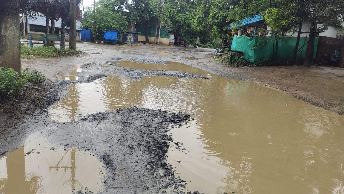 చెరువులను తలపిస్తూ రోడ్లపై గోతుల్లో వర్షపు నీరు