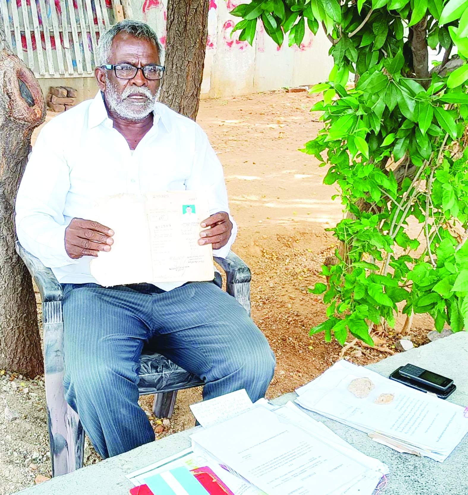 ప్రభుత్వం ఇచ్చిన పట్టదారు పాసు పుస్తకాన్ని చూపుతున్న మాజీ సైనికుడు మహేష్