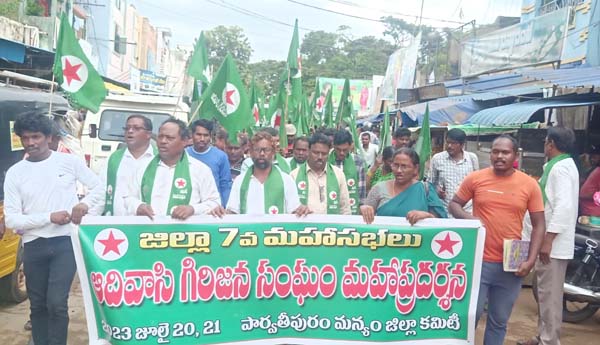 రైతు సంఘం జిల్లా అధ్యక్షులు ఎం.కృష్ణమూర్తి మాట్లాడుతూ బిజెపి అధికారంలోకి వచ్చిన తర్వాత ఎనిమిదేళ్ల పాలనలో మతోన్మాదాన్ని పెంచి పోషిస్తుందన్నారు. ఐదో షెడ్యూల్లో ఉన్న ఐదు లక్షల ఎకరాల భూమిని గనులు తవ్వడానికి కార్పొరేట్ సంస్థలకు ఇచ్చిందన్నారు. 3.50లక్షల ఉద్యోగాలు రైల్వేశాఖలో ఖాళీగా ఉన్నాయని, వీటిని భర్తీ చేసే ఆలోచన లేకపోవడం దుర్మార్గపు పాలనకు నిదర్శనం అన్నారు. ప్రభుత్వ రంగాన్ని పూర్తిగా ప్రైవేట్పరం చేసే విధానాలను బిజెపి ప్రభుత్వం తీసుకొచ్చిందన్నారు. ఆనాటి శ్రీకాకుళం రైతాంగ పోరాట ఉద్యమంలో త్యాగమూర్తుల పోరాట ఫలితంగా గిరిజన అభివృద్ధికి ఏర్పడ్డ ఐటిడిఎ, జిసిసి సంస్థలు నిర్వీర్యమయ్యే పరిస్థితిలో ఉన్నాయన్నారు. 1/70 చట్టానికి రక్షణ కరువైందన్నారు. గిరిజనుల హక్కుల పరిరక్షణకు గిరిజనులంతా ఐక్యంగా ఉద్యమించాలని పిలుపునిచ్చారు. కార్యక్రమంలో ఎపి గిరిజన సంఘం జిల్లా అధ్యక్షులు సీదరపు అప్పారావు, కార్యదర్శి మండంగి శ్రీనివాసరావు, జిల్లా గౌరవ అధ్యక్షులు మండంగి రమణ, వివిధ మండలాల నాయకులు, కార్యకర్తలు, గిరిజనులు పాల్గొన్నారు.