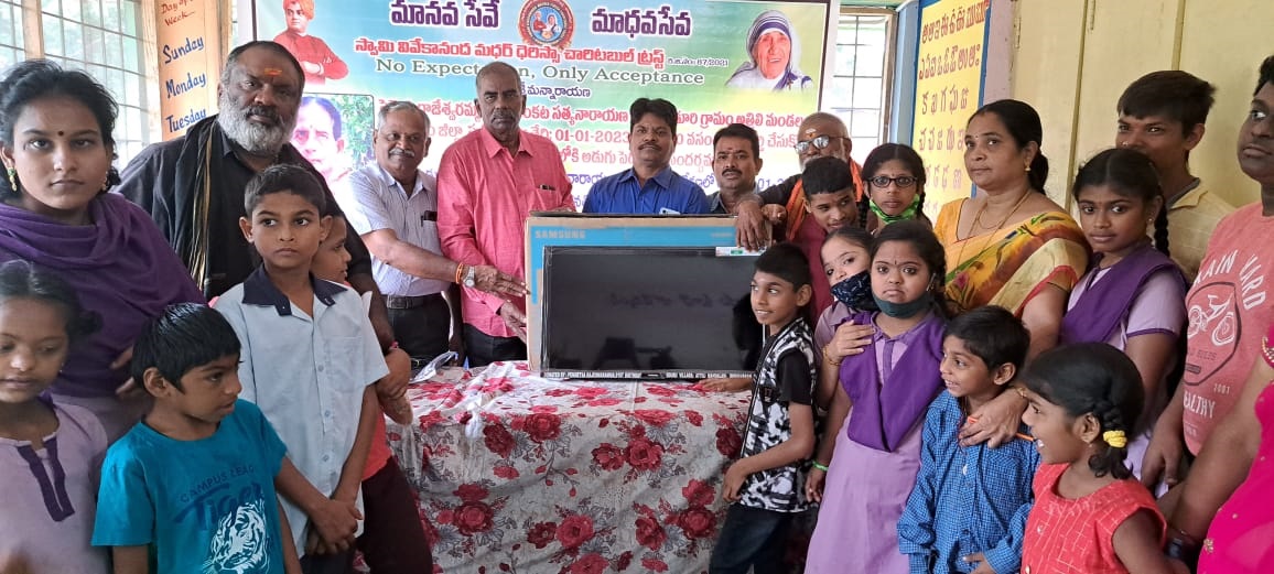 భవిత పాఠశాలకు ఎల్ఇడి టీవీ వితరణ చేస్తున్న ఆదినారాయణరాజు