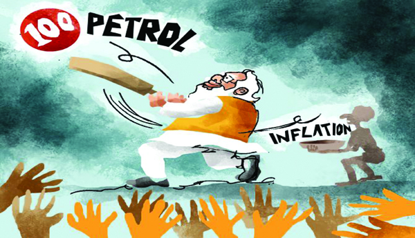 క్రికెట్ మ్యాచ్లో సెంచరీ కొట్టిన తర్వాత కూడా ఔట్ అవకుండా పరుగుల వరద పారిస్తున్న ఆటగాడిలా మోడీ పెట్రోలు, డీజిల్ ధరలను లీటరుకు వంద రూపాయలు దాటాక కూడా ఆగకుండా పెంచుకుంటూ పోతున్నారు. మనం కేరింతలు కొట్టే వీక్షకుల స్థానాల్లో లేము. బౌలింగు చేసే స్థానంలో ఉన్నాం. స్కోరు పెరుగుతోంది మోడీకి. పెరిగిపోతున్న ధరలను భరించలేక చెమటలు కక్కుతున్నది మనం.