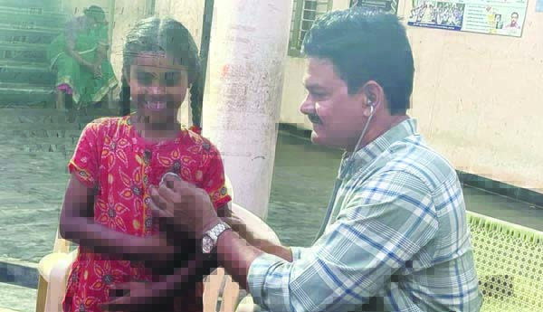 విద్యార్థులకు వైద్య పరీక్షలు చేస్తున్న డాక్టర్ బాబూరావు