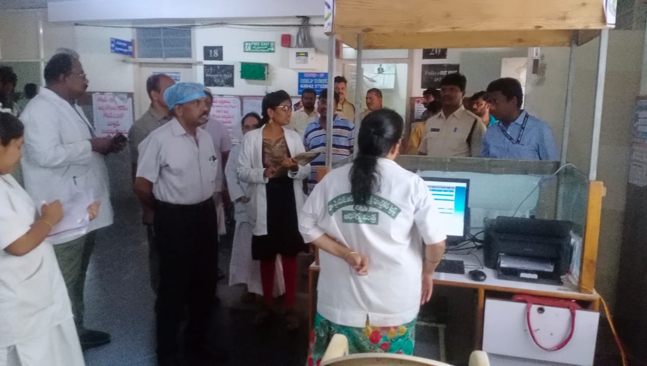 కాన్పుల వార్డులో కడుపులో బిడ్డ చనిపోయి ఉన్న తల్లిని ఆయన పరామర్శించారు. ఆమెకు అందుతున్న వైద్యం గురించి వివరాలు అడిగారు. 24 గంటల ఆల్ట్రాసౌండ్ గదిని పరిశీలించి అసిస్టెంట్ ప్రొఫెసర్ను అందుబాటులో ఉండాలని సూచించారు. క్యాజువాల్టిలో ఉన్న రోగులకు సత్వరమే వైద్య సేవల కోసం వార్డులోకి పంపించాలని సిబ్బందిని ఆదేశించారు. డిప్యూటీ సూపరింటెండెంట్గా కొత్తగా బాధ్యతలు స్వికరించిన డాక్టర్ ఎం.గోవింద నాయక్ ఐసియు రోగులను వార్డుల్లోకి పంపించే విధంగా చేయాలనీ ఆయన ఆదేశించారు. చోరీలను అరికట్టెందుకు అవసరమైన చోట సిసి కెమెరాలను ఏర్పాటు చేయాన్నారు. సూపరింటెండెంటి వెంట అడ్మినిస్ట్రేటర్ డాక్టర్ శ్రావణ్ కుమార్, నర్సింగ్. సూపరింటెండెంట్ షేక్ షమీన బేగం, బయో మెడికల్ ఇంజినీర్ చంద్రశేఖర్ ఉన్నారు.