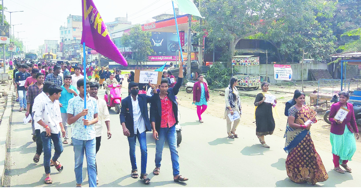 అవినీతి అధికారులపై చర్యలు తీసుకోవాలని స్థానిక వికాస్ విద్యాసంస్థల విద్యార్థులు ర్యాలీ నిర్వహించారు. లంచం తీసుకున్న అధికారులపై చర్యలు తీసుకోవాలని కోరుతూ వికాస్ విద్యాసంస్థల విద్యార్థులు ప్లకార్డులు ప్రదర్శిస్తూ సోమవారం నిరసన తెలిపారు. విద్యార్థులు వికాస్ పాఠశాల ప్రాంగణం నుంచి ఆర్డిఒ కార్యాలయం ప్రధాన రహదారుల్లో ర్యాలీ నిర్వహించారు. వికాస్ పాఠశాలకు అనుమతులు మంజూరు చేయాలని, అవినీతి అధికారులపై చర్యలు తీసుకోవాలని నినాదాలు చేశారు. పోలీస్ స్టేషన్ ఎదుట నిరసన వ్యక్తం చేశారు. బాలల దినోత్సవం రోజున విద్యార్థులు చేపట్టిన నిరసన ర్యాలీపై పట్టణ ప్రజలు చర్చించుకున్నారు. ఇటీవల పట్టణంలో వికాస్ పాఠశాలకు అనుమతులు ఇచ్చే వ్యవహారంలో విద్యాశాఖాధికారులపై పాఠశాల కరస్పాండెంట్ దురుసుగా వ్యవహరించారని అధికారులు పోలీసులకు ఫిర్యాదు చేశారు. తనను విద్య శాఖ అధికారులు లంచం అడిగి ఇబ్బందులకు గురి చేస్తున్నారని వికాస్ పాఠశాల కరస్పాండెంట్ బహిరంగ ఆరోపణలు చేశారు. ఈ విషయం పట్టణంలో చర్చనీయంశంగా మారింది. ఈ క్రమంలో బాలల దినోత్సవం రోజున విద్యార్థులు నిరసన ర్యాలీ నిర్వహించడం మరింత ఆసక్తిని కలిగించింది. ఇప్పటికైనా ఉన్నతాధికారులు జోక్యం చేసుకొని ఈ సమస్యకు పరిష్కారం చూపాలని పలువురు కోరుతున్నారు.
