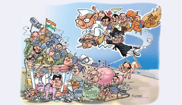 రక్షణ కొనుగోళ్లలో అవినీతికి వ్యతిరేకంగా వి.పి.సింగ్ నాయకత్వంలో జరిగిన పోరాటంలో ఆర్ఎస్ఎస్, బిజెపి లు క్రియాశీలంగా పాల్గొనడం మరో మైలురాయి వంటిది. దేశంలోని రాజకీయ క్రీడాకారులుగా హిందూత్వ కూటమిని విస్త్రుతంగా ఆమోదించడానికి అది కారణమైంది. అన్నా ఉద్యమ కాలంలోనూ అనేక హిందూత్వ దురభిమాన సంస్థలు పునరుజ్జీవం పొందాయి. హింసాకాండలో మత కలహాలలో అప్పటి వరకూ అవి తమను తాము సమర్థించుకోవడానికి సతమతమయ్యే స్థితిలో వుండేవి. ఇంకా దారుణమేమంటే వాటిలో కొన్నిటిపై విచారణ కూడా జరుగుతున్న స్థితి. ఈ హిందూత్వ కేసుల సెగ పైస్థాయిలో వున్న నేతలను కూడా తాకే పరిస్థితి ఏర్పడింది. ఆ దశలో అవినీతి వ్యతిరేక పోరాటం వచ్చింది. 2009లో ఓటమిపాలై నీరసపడిన ఈ సంస్థలు, బిజెపి లకు ఊపు రావడానికి అది కారణమైంది. అంతకన్నా ముఖ్యమైంది ఆ ఉద్యమం కాంగ్రెస్ను మరింత అప్రతిష్టపాలు చేసి ప్రజాస్వామ్యాన్ని తమకు అనుకూలంగా పునర్నిర్వచించుకునే వీలు కల్పించింది. మరో మాటల్లో చెప్పాలంటే 2014 తర్వాత ఆమోదయోగ్యత పొందిన అనేక మెజారిటీవాద శక్తులకు అన్నా ఉద్యమ కాలంలో మరింత ఊతం లభించింది.