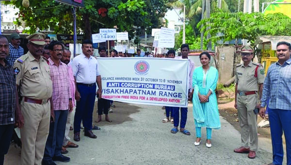 ప్రజాశక్తి -భీమునిపట్నం : అవినీతికి వ్యతిరేకంగా యాంటీ కరప్షన్ బ్యూరో విశాఖ డివిజన్ ఆధ్వర్యాన మంగళవారం స్థానికంగా ప్రభుత్వ జూనియర్ కళాశాల విద్యార్థులు అవగాహన ర్యాలీ నిర్వహించారు. జూనియర్ కళాశాల వద్ద ప్రారంభమైన ర్యాలీ గంటస్తంభం మీదుగా బీచ్కు చేరుకుంది. విజిలెన్స్ అవగాహన వారోత్సవాల్లో భాగంగా నిర్వహించిన ర్యాలీలో ఎసిబి అడిషనల్ ఎస్పి శ్రావణి, ఇన్స్పెక్టర్లు కిషోర్కుమార్, ప్రేమ్కుమార్, రామకృష్ణ, స్థానిక సిఐ కె.లక్ష్మణమూర్తి, సిబ్బంది, ఎన్ఎస్ఎస్ ప్రోగ్రాం అధికారి వేణుగోపాల్ తదితరులు పాల్గొన్నారు.