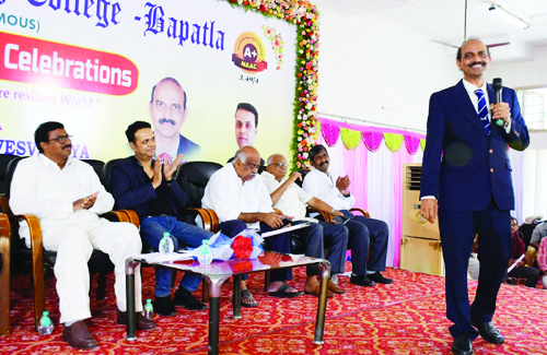 పరిశోధన రంగంలో రాణించాలంటే అవిశ్రాంత పరిశ్రమ ఉండాలనీ ఇస్రో శాస్త్రవేత్త సిహెచ్ శ్రీనివాసరావు అన్నారు. సర్ మోక్షగుండం విశ్వేశ్వరయ్య 163వ జయంతి సందర్భంగా 56వ ఇంజనీర్స్ డే సంబరాలు శుక్రవారం బాపట్ల ఇంజనీరింగ్ కళాశాలలో జరిగాయి. డాక్టర్ శ్రీనివాసరావు మాట్లాడుతూ పరిశోధన రంగంలో రాణించాలంటే ఆత్మ విశ్వాసం, అవిశ్రాంత పరిశ్రమ ఉండాలని అన్నారు. నేటి యువతరం పరిశోధనా రంగంవైపు పయనించి దేశం గర్వపడేలా సమాజ అభివృద్ధికి దోహదపడే నూతన ఆవిష్కరణలకు నాంది పలకాలని అన్నారు. కళాశాలతో తనకున్న అనుబంధాన్ని గుర్తు చేసుకున్నారు. 1988-1992బ్యాచ్లో తాను మెకానికల్ ఇంజనీరింగ్ చదువుకున్నానని తెలిపారు. హెక్సవేర్ టెక్నాలజీస్ హెడ్ హెచ్ అర్ సౌగతా సెను మాట్లాడుతూ నేటి సాంకేతిక విద్యార్థులు భావ వ్యక్తీకరణ సామర్ధ్యాన్ని పెంచుకోవాలని అన్నారు. ఆధునిక కంప్యూటర్ విజ్ఞానంపై మంచి పట్టు సాధిస్తే ఉపాధి అవకాశాలు ఎక్కువగా ఉన్నాయని అన్నారు. బాపట్ల ఎడ్యుకేషనల్ సొసైటీ ప్రెసిడెంట్ ముప్పలనేని శ్రీనివాసరావు సభకు అధ్యతక్ష వహించారు. భారత రత్న మోక్షగుండం విశ్వేశ్వరయ్యను విద్యార్థులు స్ఫూర్తిగా తీసుకోవాలని అన్నారు. వివిధ పోటీలలో గెలుపొందిన విద్యార్ధులకు బహుమతులు అందజేశారు. బాపట్ల ఎడ్యుకేషన్ కార్యదర్శి మానం నాగేశ్వరరావు మాట్లాడుతూ కళాశాల కల్పించుచున్న ఆధునిక వనరులను వినియోగించుకుని అనుకున్న లక్ష్యాలను సాధించాలని తెలిపారు. సొసైటీ వైస్ ప్రెసిడెంట్ డీ రామమోహనరావు, జాయింట్ సెక్రటరీ కె హరిపద్మప్రసాద్, కోశాధికారి టి రామకృష్ణ, టి సుబ్బారావు, ప్రిన్సిపాల్ షేక్ నజీర్, కళాశాల డీన్ స్టూడెంట్ అఫైర్స్ ప్రొఫెసర్ నిరంజన్ బాబు పాల్గొన్నారు.