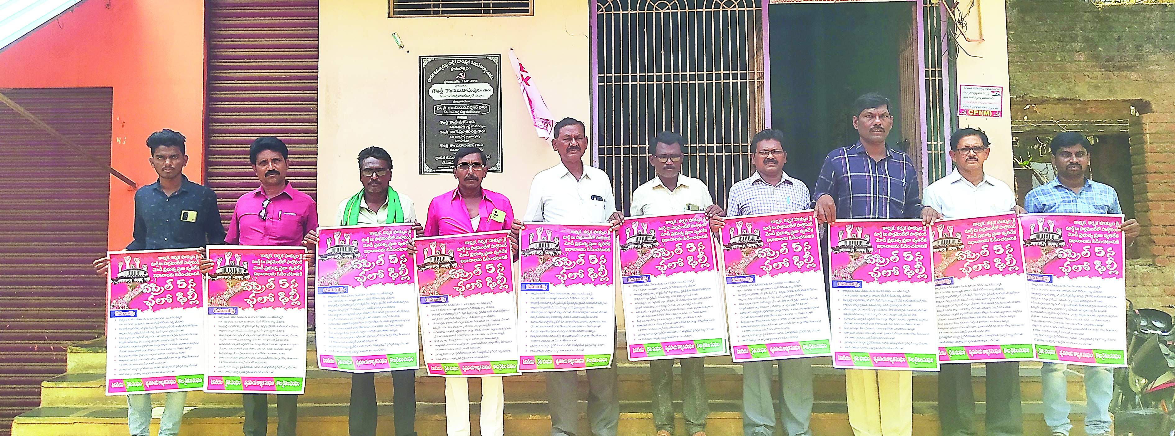 పోస్టర్లను విడుదల చేస్తున్న ప్రజా సంఘాల జిల్లా నాయకులు