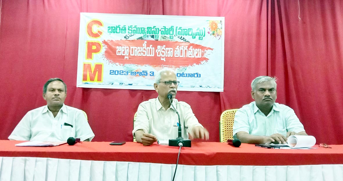 ప్రజాశక్తి - గుంటూరు : కేంద్రంలో బిజెపి అధికారంలోకి వచ్చాక మతోన్మాదాన్ని రెచ్చగొట్టి ప్రజల మధ్య విభజనను సృష్టిస్తోందని సిపిఎం రాష్ట్ర కమిటీ సభ్యులు ఆర్.రఘు అన్నారు. ఆ పార్టీ కార్యకర్తలకు బ్రాడీపేట 2/7లోని సిపిఎం జిల్లా కార్యాలయంలో రెండ్రోజులుగా నిర్వహిస్తున్న శిక్షణా తరగతులకు జిల్లా కార్యదర్శివర్గ సభ్యులు ఈమని అప్పారావు ప్రిన్సిపల్గా వ్యవహరిస్తున్నారు. ఈ మేరకు వివరాలను ఆ పార్టీ జిల్లా కార్యదర్శి పాశం రామారావు వెల్లడించారు. రెండరోరోజైన ఆదివారం 'మతతత్వ రాజకీయాలు-ప్రతిఘటనా పద్ధతులు' అంశంపై ఆర్.రఘు మాట్లాడుతూ భారత రాజ్యాంగ లౌకిక స్ఫూర్తిని దెబ్బతీసే చర్యలకే కేంద్ర ప్రభుత్వం పాల్పడుతోందన్నారు. విద్యారంగంలో సిలబస్లో ఆశాస్త్రీయమైన అంశాలను ప్రవేశపెట్టి శాస్త్ర సాంకేతిక రంగాలను దెబ్బతీస్తున్నారని, కులాలు, ప్రాంతాలు, మతాల మధ్య గొడువులు సృష్టించే ప్రయత్నాలు చేస్తున్నారని విమర్శించారు. భారత రాజ్యాంగ లౌకిక స్ఫూర్తిని కాపాడుకునేందుకు అభ్యుదయ వాదులంతా ఐక్యంగా ఉద్యమించాలని కోరారు. కార్యక్రమంలో సిపిఎం జిల్లా కార్యదర్శివర్గ సభ్యులు వై.నేతాజి, కె.నళినీకాంత్, ఎం.రవి, ఎస్ఎస్.చెంగయ్య, నాయకులు ఎల్.అరుణ, సుధాకిరణ్ పాల్గొన్నారు.
