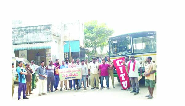 ప్రజాశక్తి - సాలూరురూరల్ : విజయవాడ ఆర్టిసి డిపోకు చెందిన బస్ డ్రైవర్ భక్తుల రాంసింగ్పై ఒంగోలులో కారును పక్కకు తీయమన్నందుకు విచక్షణారహితంగా కొట్టిన 19 మందిని వెంటనే అరెస్ట్ చేసి శిక్షించాలని సిఐటియు ఆధ్వర్యాన ఆటో వర్కర్స్ యూనియన్, ఆర్టిసి నాయకులు మండలంలోని మామిడిపల్లి మూడు రోడ్ల కూడలిలో ఆదివారం నిరసన తెలిపారు. ఈ సందర్భంగా వారు మాట్లాడుతూ రవాణా రంగంలో నిత్యం ప్రజలకు సేవ చేస్తున్న బస్, ఆటో, లారీ వివిధ రకాలుగా సేవలందిస్తున్న కార్మికులపై ఎప్పటికప్పుడు కొందరితో ఇబ్బందులు పడుతూ పనిచేస్తున్నారని అటువంటి వారిపై కొందరూ కావాలనే కక్షపూరితంగా కొట్టడం, తిట్టడం చేస్తున్నా ప్రభుత్వం కనీసం పట్టించుకోవడం లేదని అన్నారు. బస్సుకు అడ్డంగా కారు తీయమన్నందుకే ఒక్కడ్ని చేసి అంత మంది విచక్షణారహితంగా కొట్టడం దారుణమన్నారు. దోషులు ఎంతటి వారైనా వెంటనే వారిని శిక్షించాలని లేకుంటే జిల్లా వ్యాప్తంగా ఆందోళనలు చేపడతామని హెచ్చరించారు. కార్యక్రమంలో సిఐటియు జిల్లా కార్యదర్శి ఎన్వై నాయుడు, ముంగారమ్మ ఆటో వర్కర్స్ యూనియన్ అధ్యక్షులు జర్జాపు జ్యోతిష్య రావు, కృష్ణ, అప్పలరాజు, మహేష్, శ్రీను, ఆర్టిసి సిబ్బంది పాల్గొన్నారు.