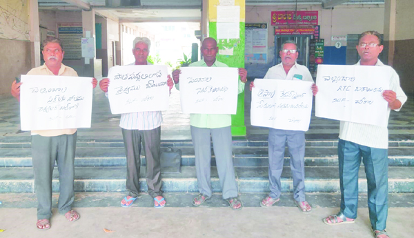 ప్రజాశక్తి-చీరాల: చీరాల ఆర్టీసీ బస్టాండ్ వద్ద ఎస్డబ్ల్యుఎఫ్ చీరాల శాఖ ఆధ్వర్యంలో నాయకులు ధర్నా నిర్వహించారు. ఆర్టీసీలో అక్రమ బదిలీలు ఆపాలని, పేరుకుపోయిన బకాయిలను వెంటనే చెల్లించాలని, జీతాలతో పాటే ఓటి బిల్లులు చెల్లించాలని కోరుతూ శుక్రవారం ఎస్డబ్ల్యుఎఫ్ చీరాల డిపో కమిటీ ఆధ్వర్యంలో ధర్నా జరిగింది. ఈ సందర్భంగా సీనియర్ నాయకులు బి శ్రీనివాసరావు మాట్లాడుతూ అక్రమ బదిలీ విధానం వలన చీరాలలో 25 మంది కార్మికులు బదిలీ అవుతారని, అందువల్ల ఈ బదిలీలు వెంటనే ఆపాలని పాత పద్ధతుల్ని కొనసాగించాలని కోరారు. అలాగే క్యాడర్ స్ట్రెంత్ పేరుతో అక్రమ బదిలీలను ఆపాలని, ఆర్టీసీకి సంబంధించిన బకాయిలన్నీ ప్రభుత్వం చెల్లించాలని, తక్షణమే ఆర్టీసీ కార్మికుల సమస్యలను ప్రభుత్వం పట్టించుకొని పరిష్కరించాలని కోరారు. ఈ కార్యక్రమంలో శ్రీనివాసరావుతో పాటు తులసీరావు, బాషా, వైవి రావు, కేబికే రెడ్డి, జై రావు, సిఐటియు నాయకులు పి కొండయ్య, సురేషు తదితరులు పాల్గొన్నారు.