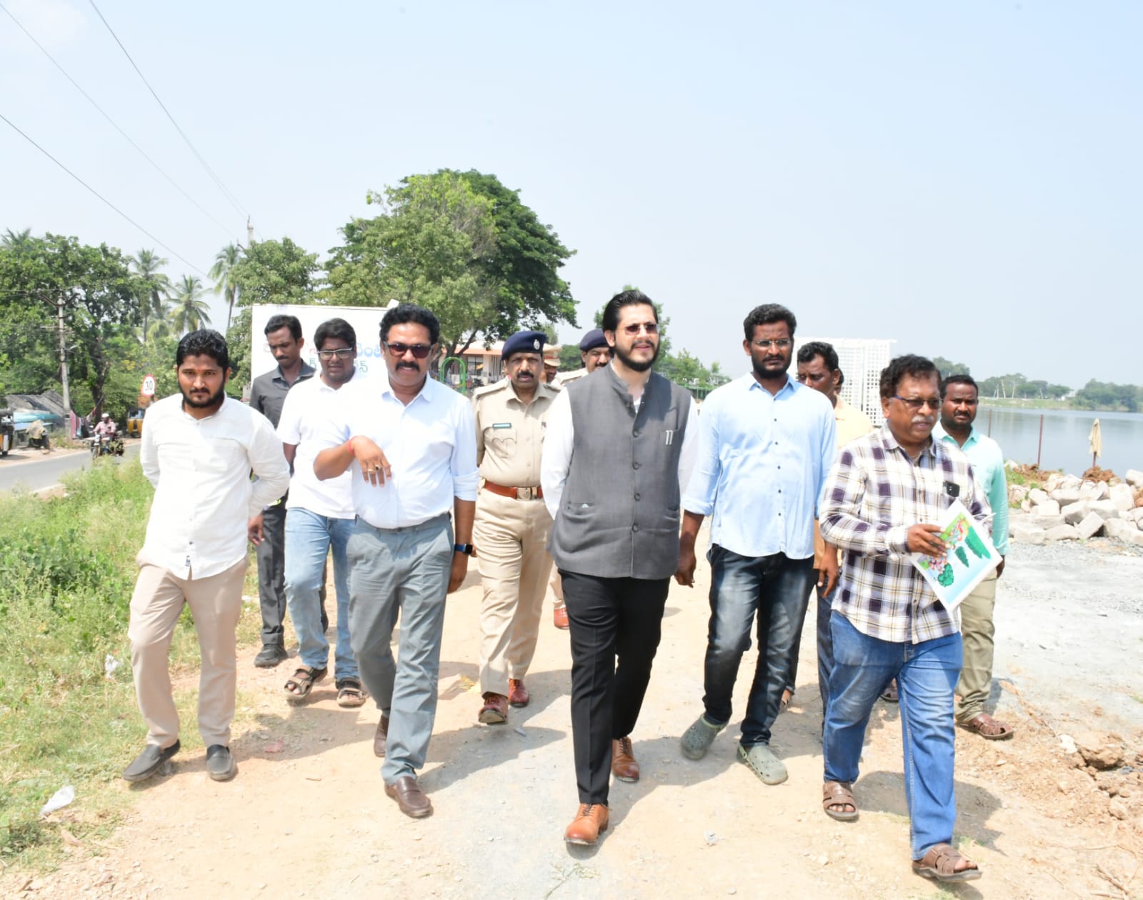 చిన్న చెరువు గట్టుపై టూరిస్ట్ రెస్టారెంట్ లో జరుగుతున్న అభివృద్ధి పనులను వేగవంతం చేసి దసరా పండుగ లోపు పట్టణ ప్రజలకు ఆహ్లాదాన్నిచ్చేలా అందుబాటులోకి తీసుకురావాలని జిల్లా కలెక్టర్ డా. మనజిర్ జిలాని సమూన్ గ్రీన్ కో ప్రతినిధులను సూచించారు. శనివారం నంద్యాల పట్టణంలోని చిన్న చెరువు గట్టుపై టూరిస్ట్ రెస్టారెంట్ వద్ద గ్రీన్ కో ఆధ్వర్యంలో జరుగుతున్న అభివృద్ధి పనులను జిల్లా ఎస్పీ కె. రఘువీర్ రెడ్డితో కలిసి పరిశీలించారు.ఈ సందర్భంగా జిల్లా కలెక్టర్ డా. మనజిర్ జిలాని సమూన్ మాట్లాడుతూ నంద్యాల పట్టణ ప్రజలకు ఆహ్లాదాన్నిచ్చే రీతిలో జరుగుతున్న అభివృద్ధి పనులను పూర్తి చేసి దసరా పండుగ లోపు పూర్తి చేసి అందుబాటులోకి తీసుకురావాలని గ్రీన్ కో ప్రతినిధులను సూచించారు. రెస్టారెంట్ బిల్డింగ్ పునర్నిర్మాణ పనులు, చిన్నపిల్లల ఆట వస్తువులకు సంబంధించిన పరికరాలు, జిమ్, ల్యాండ్ స్కేపింగ్, వాకింగ్ ట్రాక్, చెరువు చుట్టూ ప్రమాద నివారణ నిమిత్తం ఏర్పాటు చేసే ఐరన్ రక్షణ ఫెన్సింగ్, ఫుడ్ కౌంటర్ తదితర పనులను త్వరితగతిన పూర్తి చేసి పట్టణ ప్రజలకు అందుబాటులోకి తీసుకురావాలని కలెక్టర్ సూచించారు. పెండింగ్లో ఉన్న పనులను వేగవంతంగా నాణ్యతతో పూర్తి చేయాలన్నారు. చెరువులో బోటింగ్ చేసేందుకు వీలుగా అందుబాటులో ఉంచిన మోటార్ బోట్లు, ఫెడల్ బోట్లను కలెక్టర్ పరిశీలించారు. చిన్న చెరువు రెస్టారెంట్లో జరుగుతున్న పనుల ప్రగతిపై జిల్లా టూరిజం అధికారి సత్యనారాయణ కలెక్టర్ కు నివేదించారు.