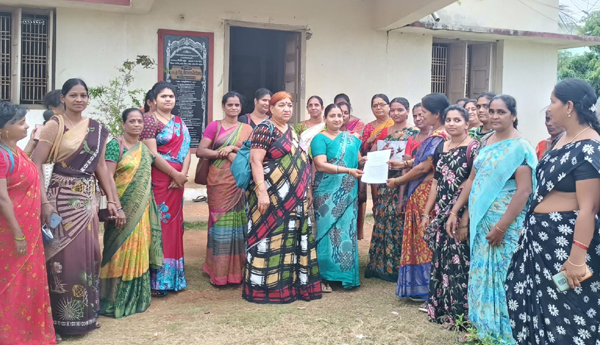 - గణపవరం పోటోవెలుగు సిబ్బందికి వినతిపత్రం అందచేస్తున్నయానమేటర్లు