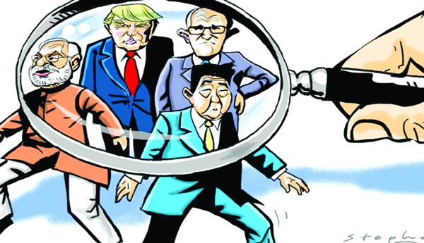 చైనాను కట్టడి చేసేందుకు పన్నిన వ్యూహాన్ని దీనిద్వారా నెరవేర్చుకోవాలని అమెరికా చూస్తున్నది. అటువంటి ఈ వ్యూహాత్మక కూటమిలో భారత్ భాగస్వామిగా చేరడం వల్ల దేశానికి వచ్చే ప్రయోజనమేమీ ఉండదు. దక్షిణ చైనా సముద్రంలో భారత దేశ కీలక ప్రయోజనాలేవీ ముడిపడి లేవు. అలాంటప్పుడు భారత నావికాదళం అమెరికా, జపాన్తో కలసి దక్షిణ చైనా సముద్రంలో సంయుక్త విన్యాసాలు నిర్వహించడమెందుకు? చైనాతో ప్రాదేశిక ఘర్షణ వచ్చినప్పుడు ఈ భాగస్వామ్య దేశాల్లో ఏ ఒక్కటీ భారత్కు సైనిక మద్దతు ఇవ్వడానికి సుముఖత చూపలేదు. దక్షిణ చైనా సముద్రంలో వివాదంతో సంబంధమున్న తీర ప్రాంత దేశాలు కానీ, ఈ ప్రాంతంలో ప్రధాన ప్రాంతీయ వేదిక అయిన ఆసియాన్ కానీ క్వాడ్లో చేరేందుకు సుముఖంగా లేవు. చైనా వ్యతిరేక గ్రూపులో చేరడం వల్ల తమ దేశ కీలక ప్రయోజనాలు ఏ విధంగాను నెరవేరవని భావించడం వల్లే ఇందులో చేరరాదని అవి భావించాయి. ఈ ప్రాంతంలో ప్రధాన దేశాల్లో ఒకటి అయిన ఇండొనేషియా దక్షిణ చైనా సముద్ర వివాదంలో ఉన్నప్పటికీ చైనా వ్యతిరేక వైఖరి తీసుకోలేదు. చైనాతో అమెరికా కోరి కయ్యం పెట్టుకుంటుంటే మోడీ ప్రభుత్వం అమెరికాకు బంటుగా చేరడం వల్ల లడఖ్లో వాస్తవాధీన రేఖ వెంబడి పరిస్థితి మరింత దిగజారడం తప్ప ఒరిగేదేమీ ఉండదు.