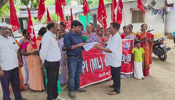 ప్రజాశక్తి-ఏలేశ్వరం: మండలంలోని తిరుమాలి గ్రామానికి చెందిన భూదాన భూమి లబ్ధిదారులకు పట్టదార్ పాస్ పుస్తకాలు మంజూరు చేయాలని తాసిల్దార్ కార్యాలయం వద్ద బుధవారం ధర్నా చేపట్టారు. ఈ సందర్భంగా సిపిఐ ఎంఎల్ నాయకుడు కోసిరెడ్డి గణేష్ మాట్లాడుతూ తిరుమల గ్రామంలోని సర్వేనెంబర్ 79 లో 2 ఎకరాల14 సెంట్లు, సర్వేనెంబర్ 80లో 9 ఎకరాల 19 సెంట్లు భూమిని 1955 లో భూస్వాములు భూదాన బోర్డుకు ఇవ్వడం జరిగిందన్నారు. సదరు భూమిని భూమిలేని 44 మందికి పట్టాలు ఇవ్వడం జరిగిందన్నారు. ఈ భూమిని రెవెన్యూ రికార్డుల్లోకి ఎక్కించి పట్టాదార్ పాస్ పుస్తకాలు మంజూరు చేయవలసిందిగా డిమాండ్ చేశారు. ఈ కార్యక్రమంలో దొమ్మేటి లక్ష్మి తారేపల్లి అజ్జమ్మ, రాజ్యాల సత్తిబాబు, పోతాడ నల్ల బాబు సుందరపల్లి అప్పలరాజు, బొండాడ పార్వతి, బత్తుల జయమ్మ, బొల్లం చిట్టెమ్మ ఉన్నారు.