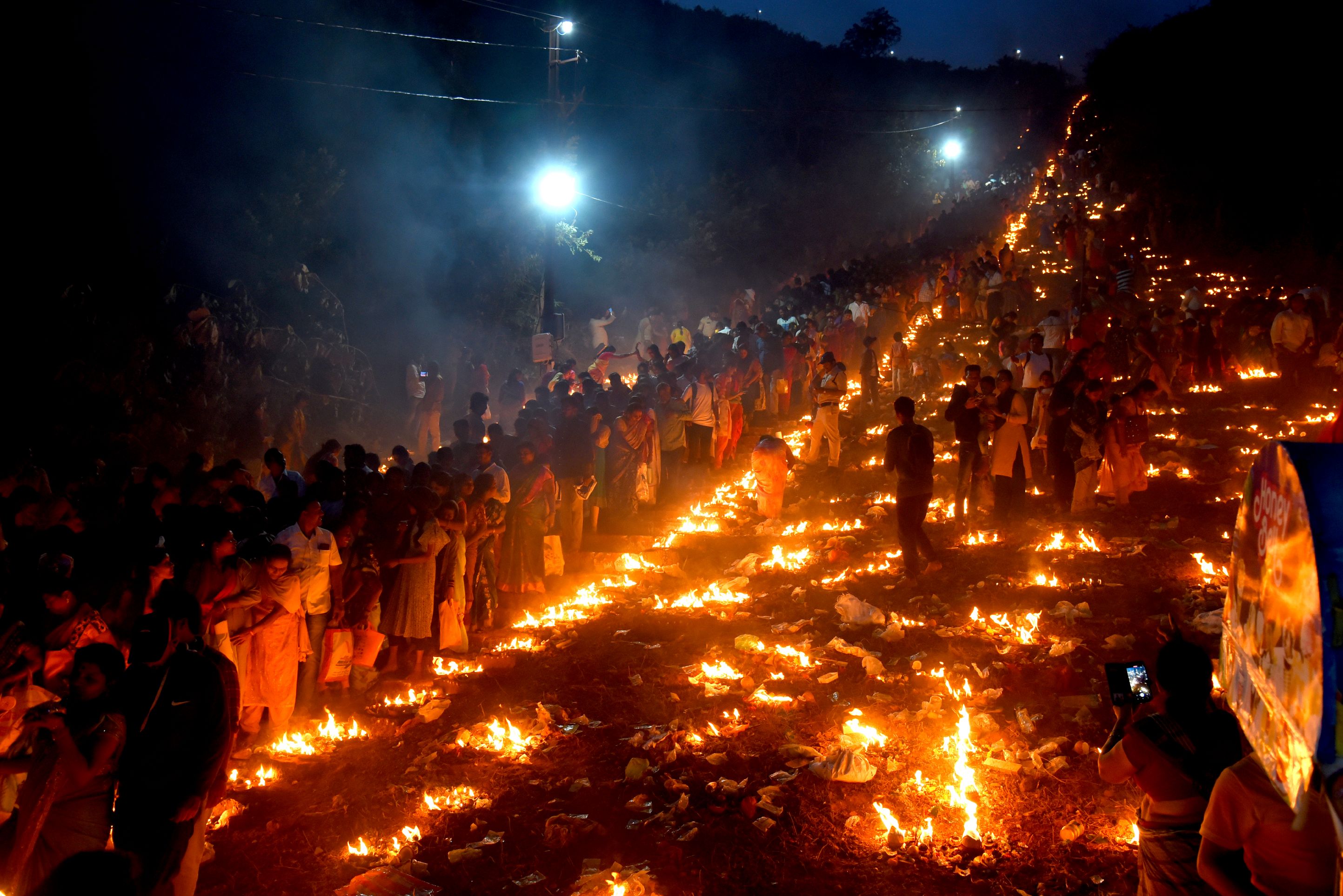 శుభముహూర్తం ప్రకారం సాయంత్రం ఐదున్నర గంటలకు కొండపైన జేగంట మోగిన వెంటనే అప్పటికే కొండమెట్లపై ఇరువైపులా కూర్చున్న భక్తులంతా ఒకేసారి దీపాలను వెలిగించారు. దీంతో అమావాస్య చిమ్మచీకట్లలోనూ అనంతపద్మనాభుని కొండ, దీపోత్సవాల వెలుగులో దేదీప్యమానంగా వెలిగిపోయింది. అదే సమయంలో కొండపైకెళ్లే మెట్ల మార్గానికి ఇరువైపులా ఏర్పాటుచేసిన బాణాసంచా పేలుళ్లు ఈ వేడుకలో ప్రత్యేక ఆకర్షణగా నిలిచాయి
