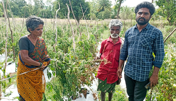 - టమోటా చెట్ల మొదలను వేర్లకు పెరికివేసిన వైనం