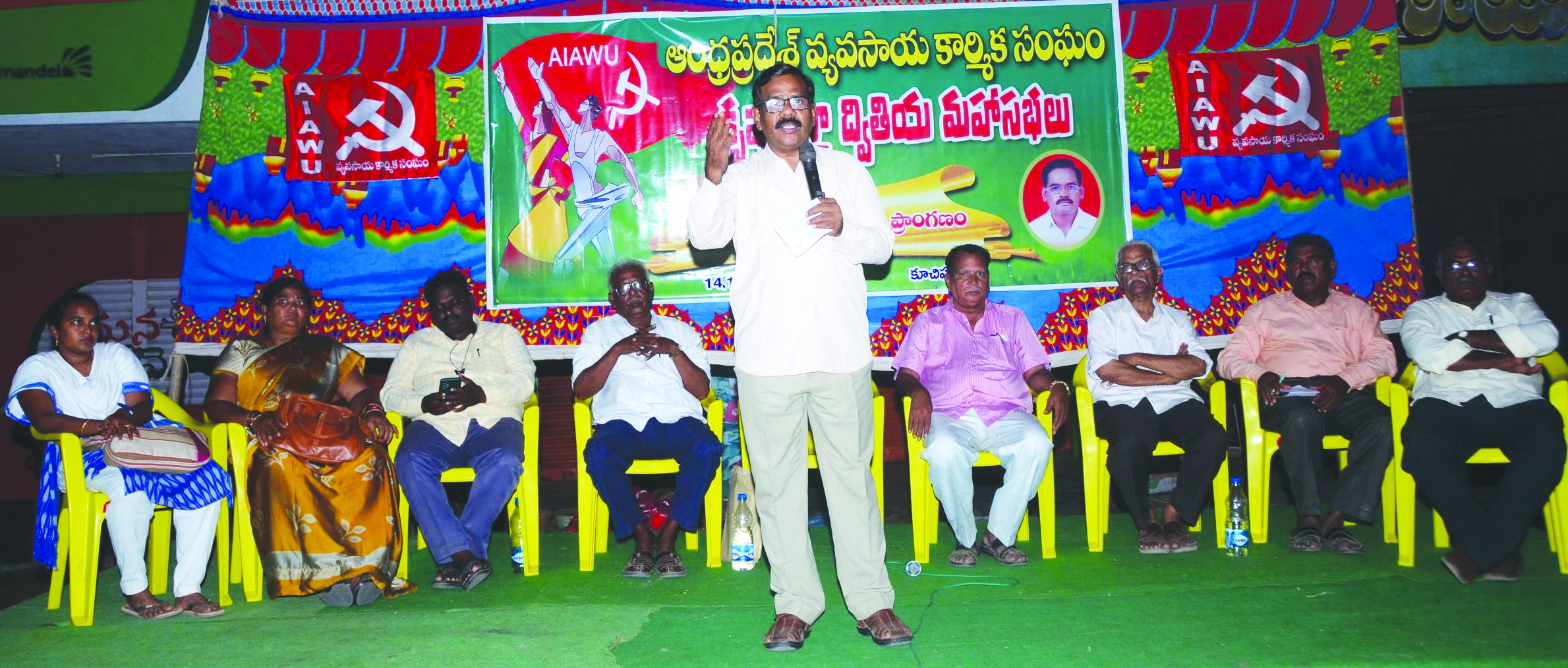 వ్యవసాయ కార్మిక సంఘం కృష్ణాజిల్లా ఉపాధ్యక్షులు ఆర్.రఘు మాట్లాడుతూ రాజకీయాల్లో నిరుద్యోగం, ఉపాధి, విద్య తదితర ప్రజా సమస్యలపై చర్చ లేకుండా పోయిందన్నారు. జిల్లాలో వేలాది ఎకరాల ఎస్సైన్డ్ భూములు, సముద్ర తీర బంజరులు, లంక భూములు పెద్దల చేతుల్లోకి వెళ్లిపోయాయన్నారు. పెద్దల ఆక్రమణలో ఉన్న భూములు పేదలకు పంపిణీ చేయాలని డిమాండ్ చేస్తూ చల్లపల్లి, మోపిదేవి, పామర్రు, నందివాడ మండలాల్లో భూ పోరాటాలు జరిగాయని గుర్తుచేశారు. ఉపాధి పనులు, భూసమస్య, దళితుల శ్మశాన వాటికలకు భూముల కేటాయింపు తదితర సమస్యల పరిష్కారానికి పోరాడాలని పిలుపునిచ్చారు.