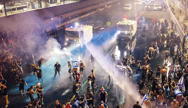 ఇజ్రాయిల్లో నెలల తరబడి నిరసన ప్రదర్శనలు సాగుతున్నాయి. వేలాదిమంది వీధుల్లోకి వస్తున్నారు. సోమవారం రాత్రి పోలీసులతో ఆందోళనకారులు ఘర్షణ పడ్డారు. ఇది ''ఇజ్రాయిల్ ప్రజాస్వామ్యం చీకటి దినం'' అని ప్రధాన వార్తాపత్రికల మొదటి పేజీల్లో యాడ్ ప్రచురితమైంది. ఆందోళన చెందుతున్న హై టెక్ వర్కర్లుగా చెప్పుకుంటున్న గ్రూపు ఈ యాడ్లను ఇచ్చింది.