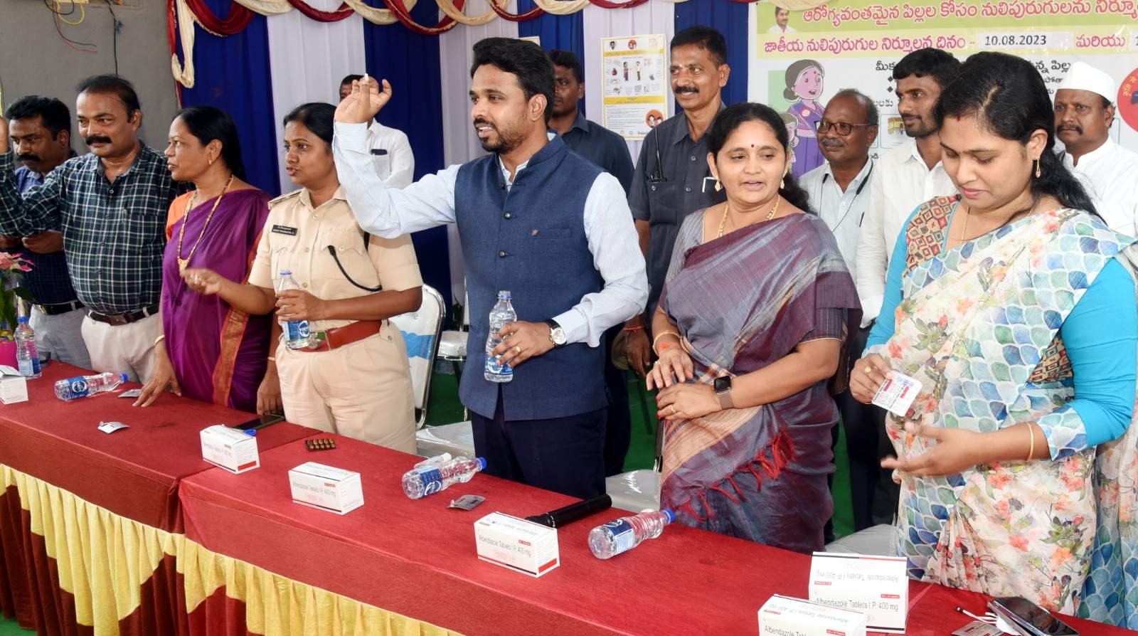 ఏడాదికి రెండుసార్లు పిల్లల చేత అల్బెండజోల్ మాత్రలు మింగించడం ద్వారా వారిలో రక్తహీనత, పోషకాహారలోపాన్ని తొలగించవచ్చని కలెక్టర్ ప్రసన్న వెంకటేష్ తెలిపారు. జాతీయ నులిపురుగుల నిర్మూలన కార్యక్రమంలో భాగంగా గురువారం ఏలూరులోని సురేష్చంద్ర బహుగుణ పోలీస్ ఇంగ్లీష్ మీడియం పాఠశాలలో జిల్లా వైద్య ఆరోగ్య శాఖ ఆధ్వర్యంలో ఉమ్మడి జిల్లా పరిషత్ చైర్పర్సన్ గంట పద్మజ ప్రసాద్, జిల్లా ఎస్పి మేరీప్రశాంతి, జిల్లా వైద్య ఆరోగ్య శాఖ అధికారి డాక్టర్ ఆశ, డిఇఒ శ్యామ్సుందర్, ఎన్సిడి ప్రాజెక్ట్ ఆఫీసర్ డాక్టర్ మానసతో కలిసి విద్యార్థులకు అల్బెండజోల్ మాత్రల పంపిణీని ప్రారంభించారు. ఈ సందర్భంగా కలెక్టర్ మాట్లాడుతూ జాతీయ నులిపురుగుల నిర్మూలన కార్యక్రమంలో భాగంగా జిల్లాలో నాలుగు లక్షల 536 మందికి నులిపురుగు నివారణ మాత్రల పంపిణీ జరుగుతుందని తెలిపారు. అన్ని ప్రభుత్వ పాఠశాలలు, అంగన్వాడీ కేంద్రాలు, జూనియర్ కళాశాలల్లో పిల్లలందరికీ అల్బెండజోల్ మాత్రలు పంపిణీ చేస్తామన్నారు. పిల్లల్లో అత్యధిక శాతం రక్తహీనత లోపం వల్లే ఎక్కువ అనారోగ్యాలకు గురవుతున్నారని, ప్రతీ ఆరు మాసాలకు ఒకసారి నులిపురుగు మాత్రలు తీసుకోవడం ద్వారా రక్తహీనత లోపాన్ని అధిగమించడంతో పాటు పిల్లలు ఆరోగ్యంగా ఉంటారన్నారు. పిల్లల శరీరంలో నులిపురుగులు ఎక్కువ సంఖ్యలో ఉండటం వల్ల ఆక్సిజన్, హిమోగ్లోబిన్ శాతం తగ్గి, తరచుగా అనారోగ్యానికి గురవుతారని తెలిపారు. ఈ నేపథ్యంలో ఏడాది నుంచి 19 సంవత్సరాల వయసు కలిగిన పిల్లలు తప్పనిసరిగా అల్బెండజోల్ మాత్రలు తీసుకునే విధంగా ప్రభుత్వం అమలు చేస్తున్న ఈ కార్యక్రమాన్ని విజయవంతం చేయాలని కోరారు. ఈ కార్యక్రమంలో జిల్లా అదనపు ఎస్పి ఎంజెవి భాస్కర్ రావు, స్కూల్ ప్రధానోపాధ్యాయులు వి.స్రవంతి పాఠశాల ఉపాధ్యాయులు, విద్యార్థులు పాల్గొన్నారు.