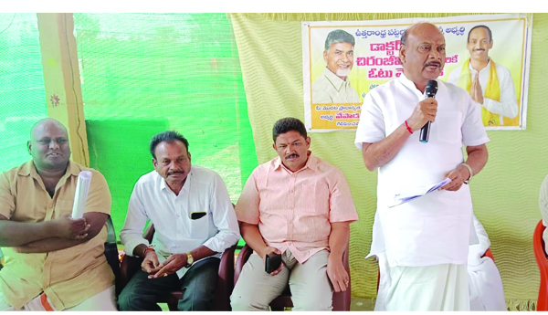 ప్రజాశక్తి-గొలుగొండ:ఈనెల 13న జరిగే ఎమ్మెల్సీ ఎన్నికల్లో వైసిపిని ఓడించాలని మాజీ మంత్రి, టిడిపి పొలిట్ పొలిట్ బ్యూరో సభ్యులు అయ్యన్నపాత్రుడు పిలుపునిచ్చారు. ఎమ్మెల్సీ ఎన్నికల ప్రచార కార్యక్రమంలో భాగంగా ఆయన శనివారం గొలుగొండ మండలం మేజర్ పంచాయతీ ఏఎల్పురం గ్రామానికి విచ్చేశారు. స్థానిక నాయకులు చింతల నారాయణమూర్తి ఇంటి వద్ద సమావేశం ఏర్పాటు చేసి ఆయన మాట్లాడారు. మొదటి ప్రాధాన్యత ఓటును టీడీపీ అభ్యర్ధి వేపాడ చిరంజీవిరావుకు, రెండో ప్రాధాన్యత ఓటును పిడిఎఫ్ అభ్యర్ధి రమాప్రభకు వేయాలని పార్టీ అధిష్టానం తీర్మానించిందని తెలిపారు. మరో ఆరు నెలల్లో శాసనసభ ఎన్నికలు ఖచ్చితంగా వస్తాయని, ఎమ్మెల్సీ ఎన్నికల్లో ఓటమితో వైసిపి ప్రభుత్వ పతకానికి నాంది పలకాలన్నారు. ఓటు వేసే విధానాన్ని ఆయన ఓటర్లకు క్షుణ్ణంగా వివరించారు. వైసిపి, బిజెపి అభ్యర్ధులకు ఓటు హక్కు అడిగే నైతిక హక్కు లేదని ఆయన విమర్శించారు. ఉత్తరాంధ్ర దోపిడికి గురవుతుంటే కనీసం ప్రభుత్వంతో మాట్లాడలేని ఎమ్మెల్యేలు, మంత్రులు ఏముఖం పెట్టుకొని ఓట్లు అడుగుతారని ఆయన దుయ్యబట్టారు. ఎమ్మెల్సీ ఎన్నికల్లో నేపధ్యంలో వైసిపి దొంగ ఓట్ల విషయంపై ఎలక్షన్ కమిషన్కు ఫిర్యాదు చేసినట్లు తెలిపారు. ఈ కార్యక్రమంలో మండల పార్టీ అధ్యక్షులు అడిగర్ల అప్పలనాయుడు, మాజీ జెడ్పీటీసీ తారక వేణుగోపాల్, చోద్యం సర్పంచ్ అదపురెడ్డి గోపాలకృష్ణ, పార్టీ నాయకులు సాంబమూర్తి, టిఎన్ఎస్ఎఫ్ పార్లమెంటరీ ఉపాధ్యక్షులు శ్రీకాంత్, లింగంపేట మాజీ సర్పంచ్ పరవాడ అప్పలనాయుడు, టీడీపీ నాయకులు, కార్యకర్తలు, పట్టభద్రులు పాల్గొన్నారు.