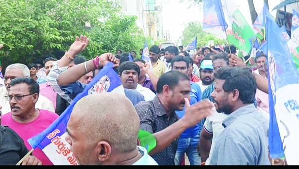 ప్రజాశక్తి-పెందుర్తి: పెందుర్తి ఎమ్మెల్యే అన్నంరెడ్డి అదీప్రాజుకు జివిఎంసి 96వ వార్డులో నిరసన సెగ తగిలింది. శనివారం ఉదయం పెందుర్తి నియోజకవర్గం పరిధిలో జివిఎంసి నిధులు రూ.4.80 కోట్లతో చేపట్టనున్న అభివృద్ధి పనులకు మేయర్ హరివెంకట కుమారి, ఎమ్మెల్యే అదీప్రాజు శంకుస్థాపన చేశారు. ఈ సందర్భంగా 96వ వార్డులో పర్యటనకు వచ్చిన ఎమ్మెల్యేను స్థానిక వైసిపి నాయకులు, కార్యకర్తలు అడ్డుకున్నారు. వాహనాలకు అడ్డంగా కూర్చుని అదీప్రాజుకు వ్యతిరేకంగా నినాదాలు చేశారు. ఎమ్మెల్యే గో బ్యాక్ అంటూ నినదించారు. 96వ వార్డులోని పార్వతీనగర్ కాలనీ, ఆదిత్యనగర్ కాలనీ, ఎల్ఐసి కాలనీలో ఎమ్మెల్యే కార్యక్రమాలను వైసిపి కార్యకర్తలు అడ్డుకున్నారు. ఎమ్మెల్యే ఎన్నికల్లో ఎన్నో వ్యయ ప్రయాసలకోర్చి అదీప్ రాజును అధిక మెజార్టీతో గెలిపించిన పార్టీ రూరల్ జిల్లా అద్యక్షుడు శరగడం చిన అప్పలనాయుడుకు గానీ, తమకు గానీ కనీసం సమాచారం ఇవ్వకుండా తెలుగుదేశం నాయకులతో కుమ్మకై 96వ వార్డులో అభివృద్ధి పనులకు శంకుస్థాపన చేయడం దారుణమని మండిపడ్డారు. మూడున్నరేళ్లుగా ఒక్కసారి కూడా ఇక్కడకు ఎమ్మెల్యే రాలేదని విమర్శించారు. పోలీసులు భారీ సంఖ్యలో చేరుకొని నిరసనకారులను అడ్డు తొలగించడంతో ఆయా కార్యక్రమాలకు ఎమ్మెల్యే శంకుస్థాపన చేసి వెనుదిరిగారు. ఈ కార్యక్రమంలో జివిఎంసి టిడిపి ఫ్లోర్లీడర్ పీలా శ్రీనివాసరావు, జోనల్ కమిషనర్ మల్లయ్యనాయుడు, స్థానిక వైసిపి నాయకులు పాల్గొన్నారు.