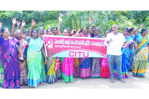 ప్రజాశక్తి- రాజమహేంద్రవరం మధ్యాహ్నం భోజనం కార్మికుల సమస్యలు పరిష్కరించాలని ఎపి మధ్యాహ్న భోజన కార్మిక సంఘం (సిఐటియు ) రాష్ట్ర కమిటీ పిలుపుమేరకు కలెక్టరేట్ వద్ద మధ్యాహ్న భోజనం కార్మికులు సోమవారం ధర్నా చేపట్టారు. జిల్లాలోని పలు మండలాల నుంచి కార్మికులు కలెక్టరేట్కి చేరుకుని తమ న్యాయమైన సమస్యలు పరిష్కరించాలని నినదించారు. ధర్నా అనంతరం సమస్యలతో కూడిన వింత పత్రాన్ని కలెక్టర్కి అందజేశారు. ఈ సందర్భంగా యూనియన్ జిల్లా అధ్యక్షులు చిట్టా బేబీ మాట్లాడుతూ పాతికెళ్ళు పైబడి మధ్యాహ్నం భోజనం కార్మికులుగా పనిచేస్తున్నా ప్రభుత్వం కేవలం రూ.3000 మాత్రమే వేతనంగా ఇస్తుందన్నారు. ప్రస్తుతం పెరిగిన నిత్యవసర వస్తువుల ధరలు ఆకాశాన్ని అంటుతుంటే విద్యార్థులకు ఇచ్చే మెనూ ఛార్జీలు మాత్రం పాతాళంలోనే ఉన్నాయన్నారు. ప్రతిపక్ష నాయకుడిగా జగన్ మధ్యాహ్న భోజనం కార్మికులకు హామీలు ఇచ్చారని, అధికారంలోకి వచ్చాక వారి ఊసే లేకుండా వ్యవహరిస్తున్నారని దుయ్యబట్టారు. రాగిజావ కాయడానికి అదనపు గ్యాస్ బండ ఇవ్వాలని, వంట పాత్రలు ఇవ్వాలని, రిటైర్మెంట్ బెనిఫిట్, ఇన్సూరెన్స్ సౌకర్యం కల్పించాలని, రాజకీయ తొలగింపులు ఆపాలని, ఉద్యోగ భద్రత కల్పించాలని డిమాండ్ చేశారు. ఈ కార్యక్రమంలో యూనియన్ జిల్లా నాయకులు నాగమణి, అమ్మాజీ, సత్యవతి, సత్యవతి, మిడ్డే మీల్ కార్మికులు పాల్గొన్నారు.