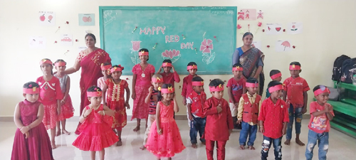 ఎరువు రంగు ప్రాముఖ్యతను గురించి పాఠశాల కరస్పాండెంట్ తోటకూర విజయభాస్కర్ వివరించారు. మండలంలోని వంకాయలపాడు శ్రీ సాయిరామ స్కూలులో శనివారం ఎరుపు రంగు దినోత్సవాన్ని నిర్వహించారు. ఎరుపు రంగు బలాన్ని, బాద్యతను, పరాక్రమాన్ని, ధైర్యాన్ని ఇస్తుందన్నారు. ఈ సందర్భంగా విద్యార్ధులు ఎరుపు రంగు దుస్తులతో పాఠశాలకు హాజరయ్యారు. పలు సాంస్కృతిక కార్యక్రమాలు నిర్వహించారు.