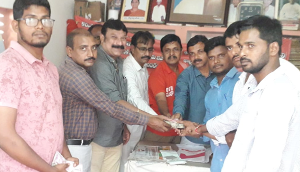 ప్రజాశక్తి - భవానీపురం : ఇటీవల గొల్లపూడిలోని గాంధీ హోల్సేల్ కమర్షియల్ కాంప్లెక్స్ లో ఉన్న ట్రాన్స్పోర్ట్ లో పనిచేస్తున్న ముఠా కార్మికులు ఆవుల వెంకటేశ్వర్లు, నీలకంఠం రోడ్డు ప్రమాదంలో టిప్పర్ ఢీకొనటం సంఘటనలో మృతి చెందారు. ఈ నేపథ్యంలో మెఘా ఇంజనీరింగ్ అండ్ ఇన్ఫ్రా లిమిటెడ్ చేపట్టే పనులు నేపథ్యంలో టిప్పర్ ఢీకొనడంతో ఆ ఇద్దరు కార్మికులు మృతి చెందారు. సంబంధిత కంపెనీ నిర్వాహకులు, పశ్చిమ సిఐటియు కార్యదర్శి బోయి సత్యబాబు ఆధ్వర్యంలో సంబంధిత కుటుంబ ఇద్దరు సభ్యులకు రూ. 3 లక్షలు ఆర్థిక సహాయం భవానిపురంలోని సిపిఎం కార్యాలయంలో శుక్రవారం ఇప్పించారు. ఈ కార్యక్రమంలో సిఐటియు పశ్చిమ సిటీ కార్యదర్శి బోయి సత్యబాబు, ఆటో వర్కర్స్ యూనియన్ పశ్చిమ కార్యదర్శి కరీముల్లా, ముఠా కార్మిక నాయకులు వెంకటేశ్వరరావు( చౌదరి) తదితరులు పాల్గొన్నారు.