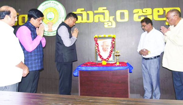 స్థానిక ఐటిడిఎ గిరిమిత్ర సమావేశ మందిరంలో నిర్వహించిన మహాత్మా గాంధీజీ జయంతి వేడుకలలో ప్రాజెక్టు అధికారి సి.విష్ణు చరణ్ పూలమాలలు వేసి నివాళులర్పించారు. గాంధీజీ బాటలో నడవాలని పిలుపునిచ్చారు.