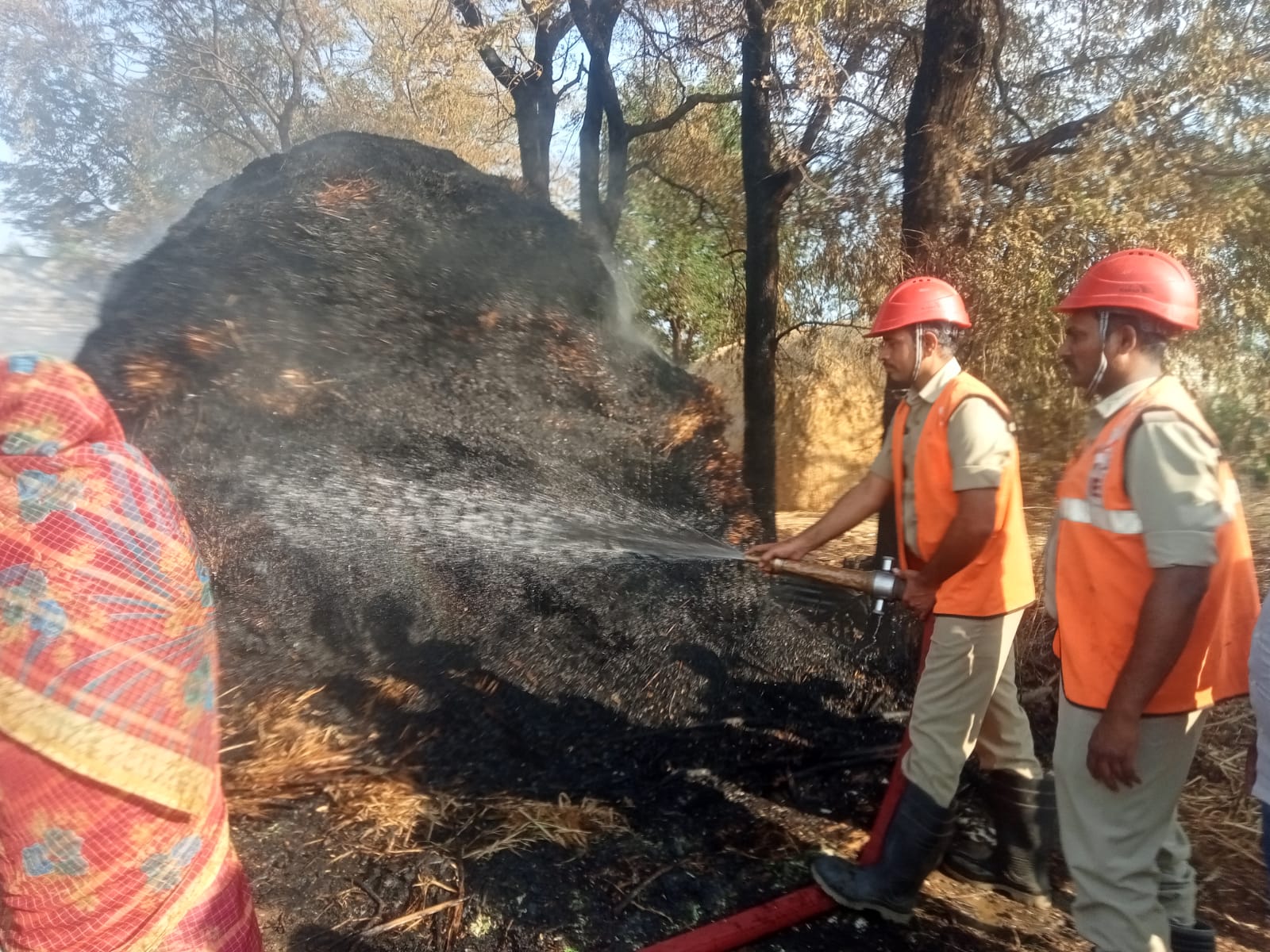 గడ్డి వాములను ఆర్పుతున్న ఫైర్ సిబ్బంది