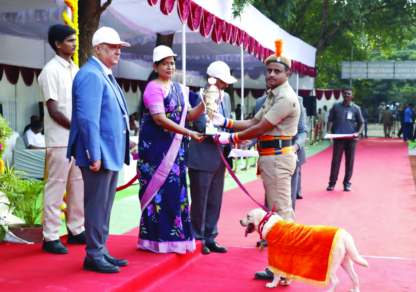 చిత్తూరుఅర్బన్: ఎనిమిది నెలలు శిక్షణ పొంది ఎస్ఇబి విభాగంలో పోలీసు డాగ్ ఇందు గోల్డ్మెడల్ సాధించింది. రాష్ట్ర హోంమంత్రి తానేటి వనిత చేతుల మీదుగా బహుమతి అందుకున్న డాగ్ ఇందు, హ్యాండ్లర్ పీడీ అప్సర్బాష మంగళగిరి పోలీసు హెడ్క్వార్టర్స్ నుండి జిల్లాకు చేరుకున్నారు. రెండు నూతన జాగిలాలు ఇందు, రోసి గెల్డ్మెడల్ సాధించినందుకు సంతోషంగా ఉందని ఎస్పి వై.రిశాంత్రెడ్డి సంతోషం వ్యక్తం చేశారు.