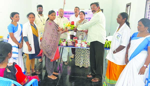 ప్రజాశక్తి-పర్చూరు: పర్చూరు రోటరీక్లబ్ ఆధ్వర్యంలో మండలంలోని పోతుకట్ల, కొమర్నేనివారిపాలెం గ్రామాల్లో గర్భిణులకు 12 రకాల పౌష్టికాహార పదార్థాలను డాక్టర్ల సలహా మేరకు పంపిణీ చేశారు. ఈ సందర్భంగా చెరుకూరు వైద్యశాల వైద్యాధికారి డాక్టర్ ఎం గౌతమ్ మాట్లాడుతూ గర్భిణులు పౌష్టికాహారం తీసుకోవాలని, క్యాల్షియం, ఐరన్ మాత్రలు తప్పని సరిగా తీసుకోవాలని సూచించారు. ప్రతి నెలా దగ్గరలోని డాక్టర్ల సలహాలను తీసుకోవాలని సూచించారు. ముఖ్య అతిథిగా పోతుకట్ల ఎంపిటిసి పంబి కిషోర్రెడ్డి మాట్లాడుతూ రోటరీ చేస్తున్న సేవలను కొనియాడారు. కార్యక్రమంలో రోటరీక్లబ్ అధ్యక్షులు నాగభైరు శ్రీనివాసరావు, కార్యదర్శి పంబి సదానంద రెడ్డి, ఆరోగ్య కార్యకర్తలు, ఆశ కార్యకర్తలు, ప్రజలు పాల్గొన్నారు. అనంతరం పౌష్టికాహార ప్యాకెట్లను రోటరీ అధ్యక్షులు నాగభైరు శ్రీనివాసరావు దంపతులు గర్భిణులకు అందజేశారు.