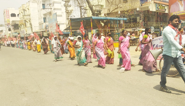 ప్రజాశక్తి-చీమకుర్తి : దేశవ్యాప్త సార్వత్రిక సమ్మెలో భాగంగా ఈరోజు చీమకుర్తిలో సిఐటియు ప్రజా సంఘాల ఆధ్వర్యంలో చీమకుర్తి ఆర్టీసీ బస్టాండ్ నుండిస్టేట్ బ్యాంక్ వరకు భారీ ర్యాలీ జరిగింది. ఈ సందర్భంగా రైతు సంఘం జిల్లా ప్రధాన కార్యదర్శి పమిడి వెంకట్రావు మాట్లాడుతూ 'కేంద్రంలోని మోడీ ప్రభుత్వం కార్మిక రైతు ప్రజావ్యతిరేక విధానాలు అవలంబిస్తోందని కార్పొరేట్ కంపెనీలు అనుకూలమైన విధానాలు అమలు చేస్తూ వారి సంపద పెంచుతుందని దీని వలన ప్రజల కష్టాలు రోజు రోజుకి పెరుగుతుంది. పెట్రోల్, డీజిల్ నిత్యావసర వస్తువుల ధరలు తగ్గించాలి,కార్మికుల నష్టం చేసే నాలుగు లేబర్ కోడ్స్ రద్దుచేయాలి. కార్మికులకు కనీస వేతనం 26 వేల రూపాయలు ఇవ్వాలి. కార్మికులను పర్మినెంట్ చేయాలి,ప్రభుత్వ రంగ సంస్థల ప్రైవేటీకరణ ఆపాలని, రైతులు పండించిన పంటలకు గిట్టుబాటు ధరలు చట్టం చేయాలి,ఉపాధి హామీ పథకానికి నిధులు పెంచి పట్టణాలు కూడా విస్తరించాలని డిమాండ్ చేశారు. ఈ కార్యక్రమంలో సిఐటియు మండల అధ్యక్ష కార్యదర్శులు, వీరాంజనేయులు, పి ఆంజనేయులు జిల్లా నాయకులు పి.వెంకట్ రావు మాట్లాడారు. గ్రానైట్ వర్కర్స్ యూనియన్ అధ్యక్షులు ఆర్ ఆంజనేయ రెడ్డి, మున్సిపల్ వర్కర్స్ యూనియన్ జిల్లా అధ్యక్షులు నాగయ్య, ముఠా వర్కర్స్ యూనియన్ జిల్లా అధ్యక్షులు ఆంజనేయులు, వ్యవసాయ కార్మిక సంఘం మండల అధ్యక్ష కార్యదర్శులు జి ప్రసాద్, కె వెంకటేశ్వర్లు, రైతు సంఘం నాయకులు కొల్లూరు వెంకటేశ్వర్లు, కెవిపిఎస్ మండల కార్యదర్శి టి రామారావు, సిఐటియు నాయకులు యోహాను పి ఏడుకొండలు, బి సురేష్, కోటేశ్వరరావు, అంగన్వాడి యూనియన్ నాయకులు శారద, రాధ, మాధవి ముఠా వర్కర్స్ యూనియన్ నాయకులు జి ప్రభుదాసు కార్మికులు పాల్గొన్నారు