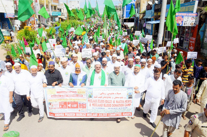 కడప అర్బన్ : భారతదేశం మతసామరస్యానికి ప్రతీక అని, ప్రతి ఒక్కరూ మహమ్మద్ ప్రవక్త సల్లేవుల్లాహు వసల్లం అడుగుజాడల్లో నడవాలని ఉప ముఖ్య మంత్రి ఎస్. బి. అంజాద్ బాషా అన్నారు. గురువారం మహమ్మద్ ప్రవక్త సల్లే వుల్లాహు వసల్లం జయంతిని మిలాదున్నబీ వేడుకలు ఘనంగా నిర్వ హించారు. ఈ సందర్భంగా ఆయన మాట్లాడుతూ ప్రజలు, రైతులు సుఖ శాంతులతో సుభిక్షంగా ఉండాలని చెప్పారు. తొలుత ఉప ముఖ్యమంత్రి చేతుల మీదుగా అన్నదాన కార్యక్రమం ప్రారంభించారు. కార్యక్రమంలో ముస్లిం మైనారిటీ మత పెద్దలు, నాయకులు పాల్గొన్నారు. పోరుమామిళ్ల టౌన్ : మిలాదున్ నబీ వేడుకలు గురువారం ఘనంగా నిర్వహించారు. ముస్లిం సోద రులు మహమ్మద్ ప్రవక్త జయంతి సందర్బంగా ప్రార్థన నిర్వహించారు. అనంతరం పోరుమామిళ్లలోని మహబూబ్ నగర్ నుండి గాంధీ బొమ్మ సెంటర్ వరకు ర్యాలీ నిర్వహించారు. ఈ సందర్భంగా కబా నమూనాను వాహనం మీద ఊరేగింపుగా తీసుకుని వెళ్లారు. ఈ ర్యాలీలో ఇస్లాం మత పెద్దలు, యువత పెద్ద ఎత్తున పాల్గొన్నారు.